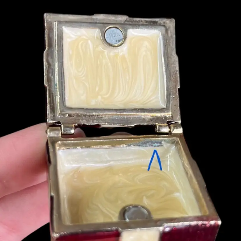Approximately 1.5” x 1.25” x 1”. No chips or cracks. Please see photo #10 to see patina/verdigris on the interior.