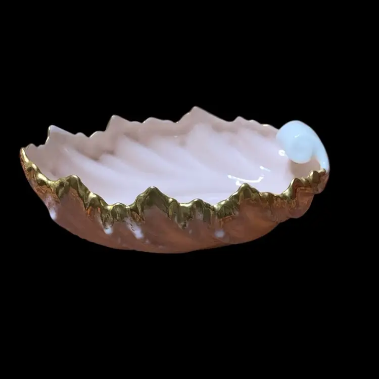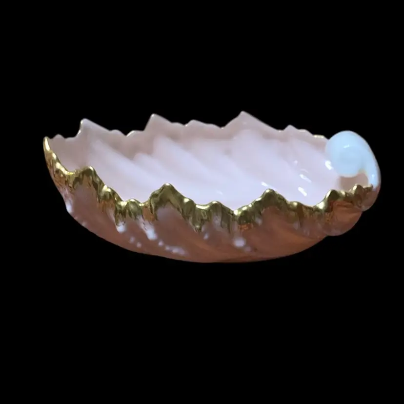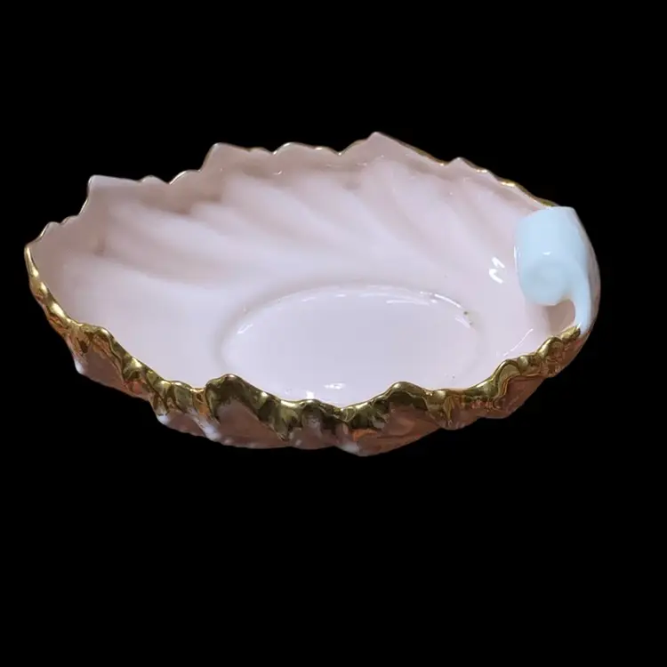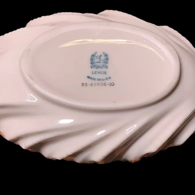 11. Lenox Acanthus 6” Pink Leaf Shell Bowl Candy Dish Gold Trim Made in USA