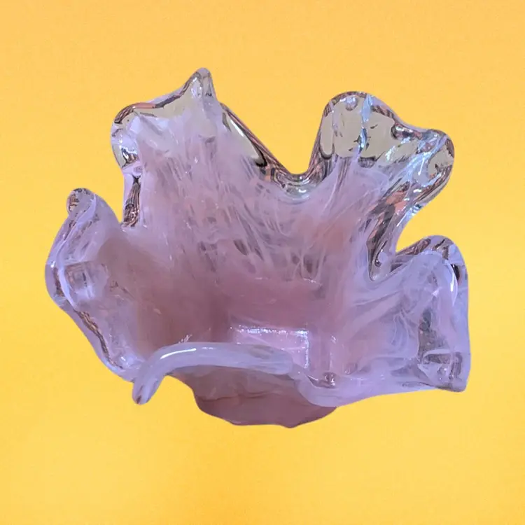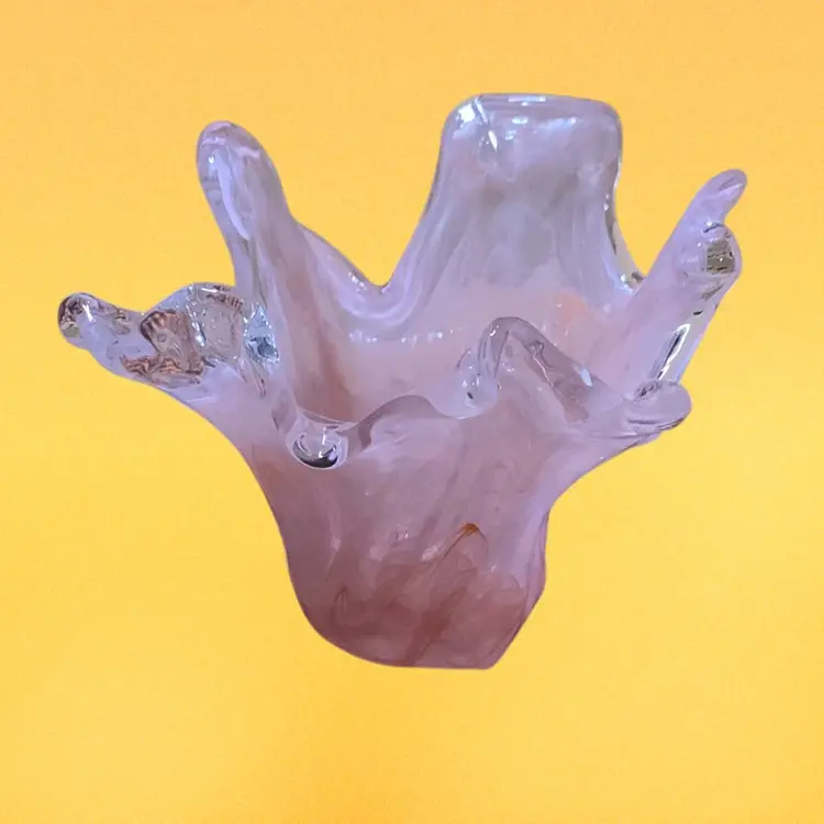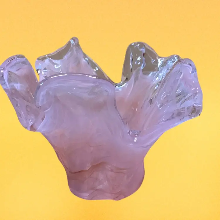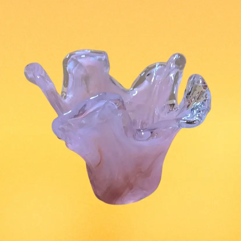 17. Glass Candle Votive Italy Pink Art Vase Ruffled