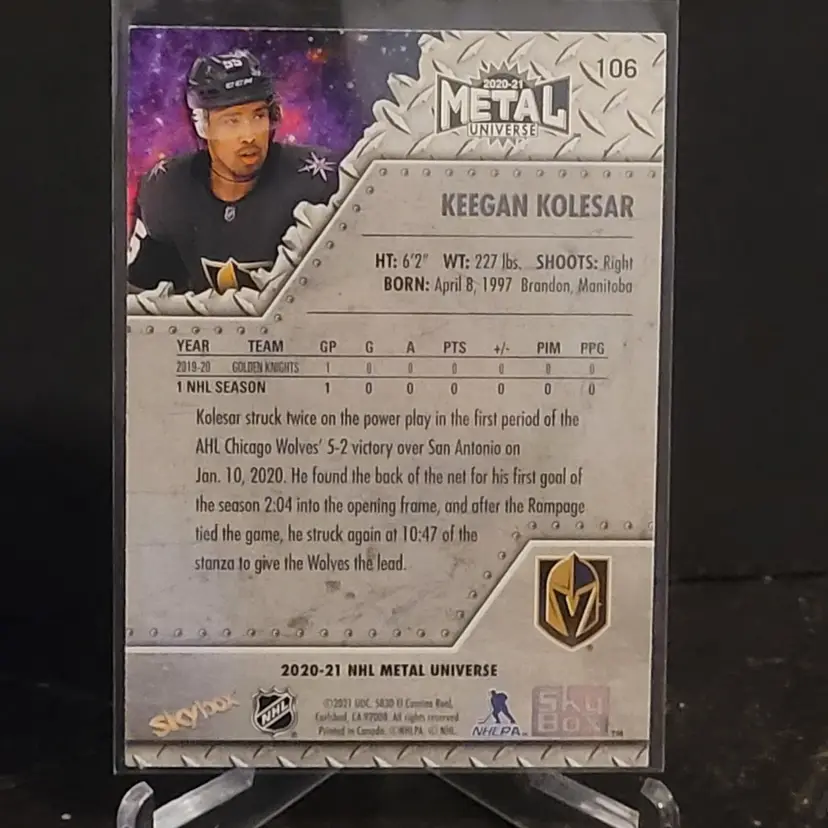 2020-21 Skybox Metal Universe Rookies Keegan Kolesar #106 Blue Spectrum SP