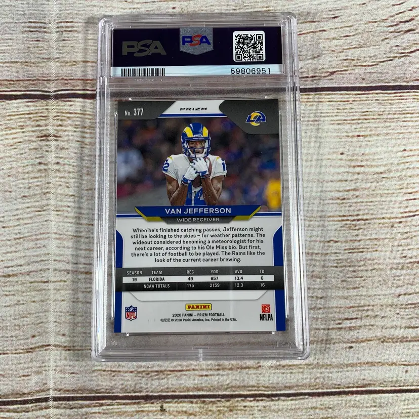 2020 Prizm Van Jefferson RC Green Scope Rookie #/75 Rams PSA 9