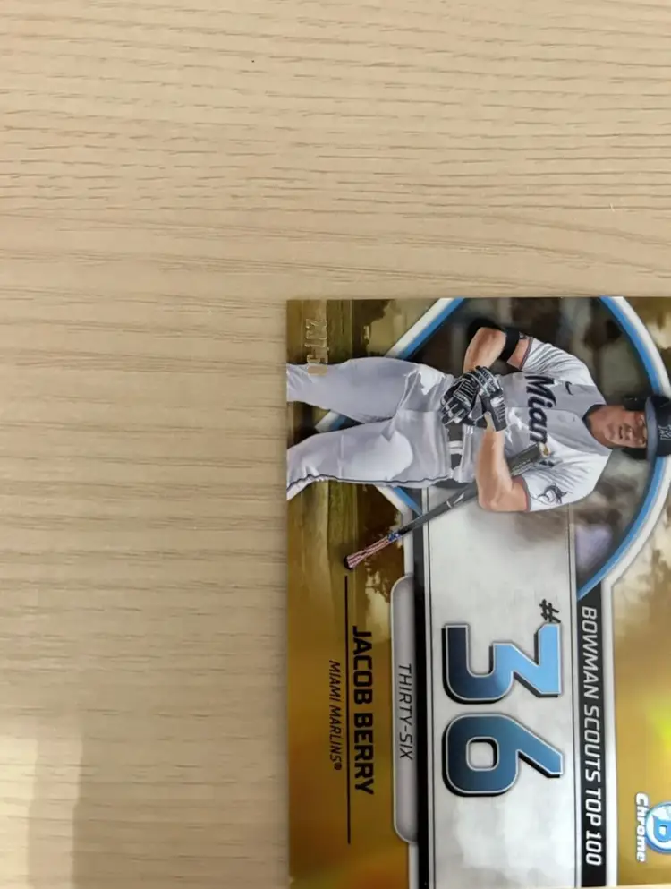 Jacob Berry Bowman Top Prospects Gold Refractor 23/50 #BTP-36. Near mint condition, sleeved, top loaded since opening. $4 shipping + $0.20 per additional item!
