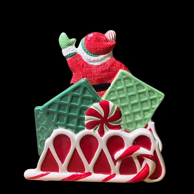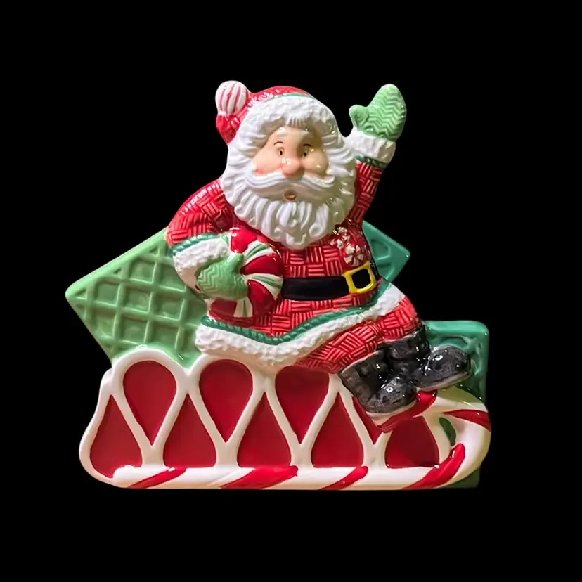 30. 2008 Fitz & Floyd Peppermint Santa 56/170 Napkin Holder Christmas Decoration