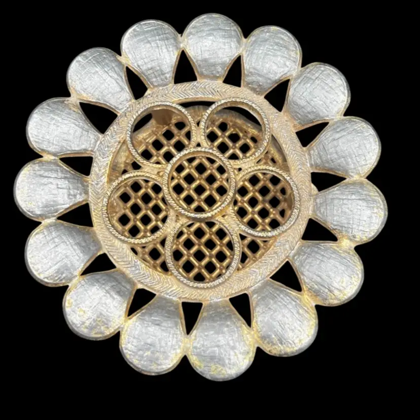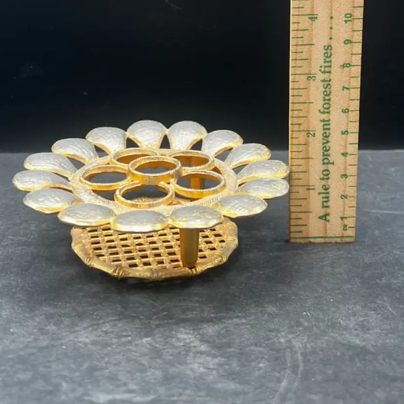 Vintage Two Tone Metal 1960's Celeste Signed 6 Lipstick Holder Sunflower Shape In very good condition. Stands 1 1/4” x 4 3/4” in diameter