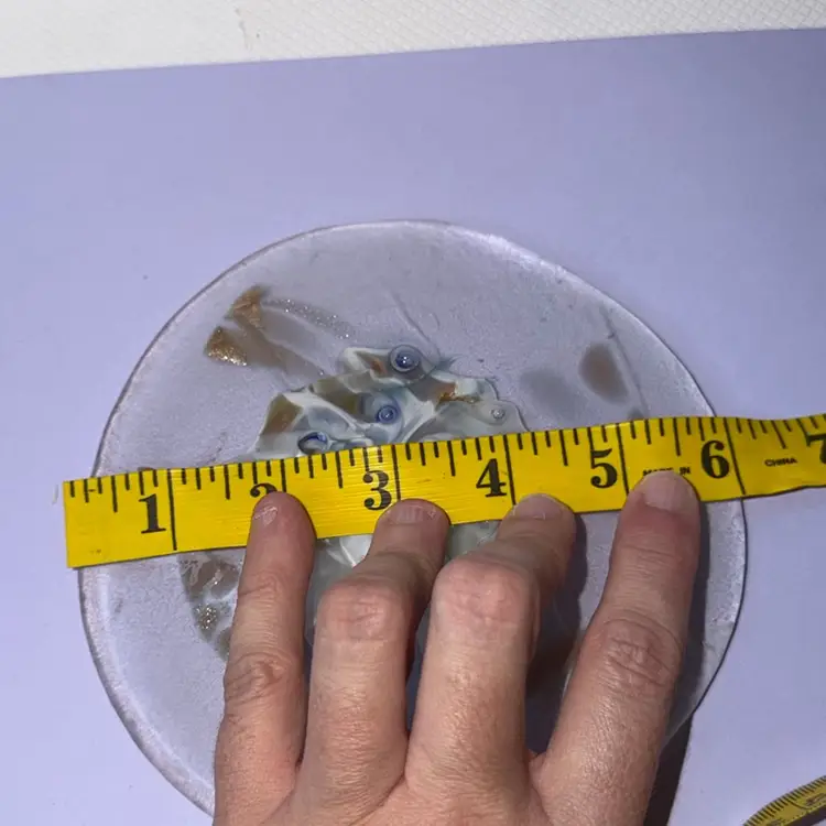 Measures 6 by 6 long and I can’t find no fleas-bites the top is not flat because of how it was made but no chipping.