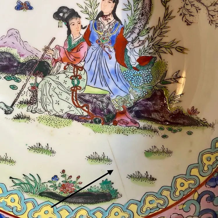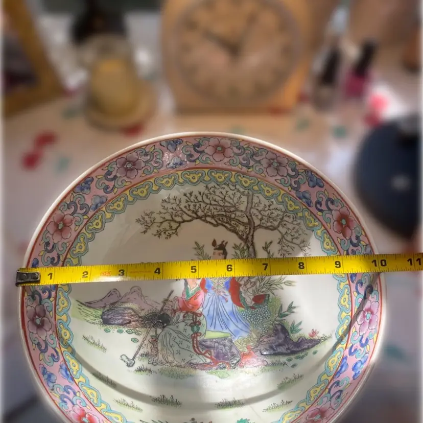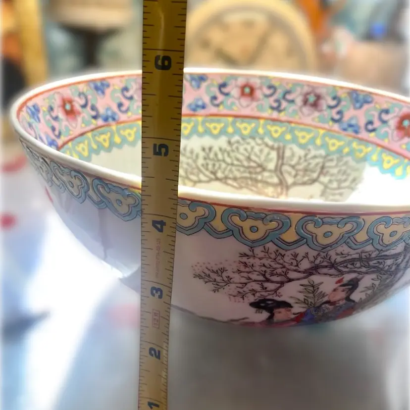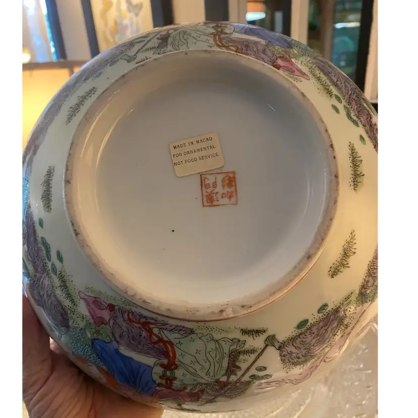 Please note there is one hairline crack in the bowl - see pictures. This bowl was likely made in the 1970s per research however it might be older. Famille Rose is a type of Chinese porcelain known for its colorful decorations featuring pink overglaze enamel as a dominant color. The term Famille Rose is a French term for “pink family” that Western collectors used to describe this style.