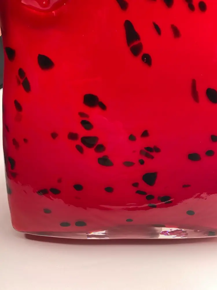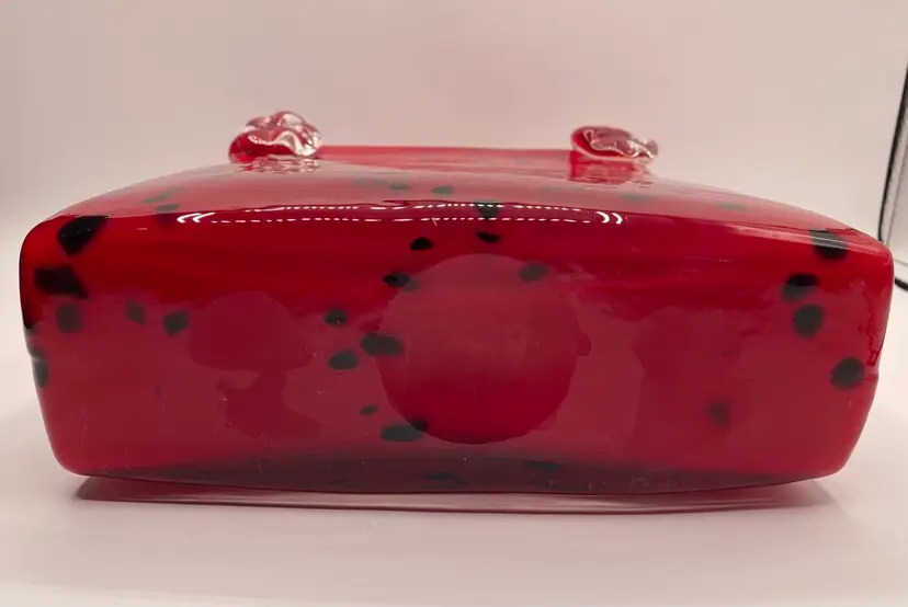 Vintage Italian Hand Blown Red Purse With Black Splash 12” T - 8-1/2” H