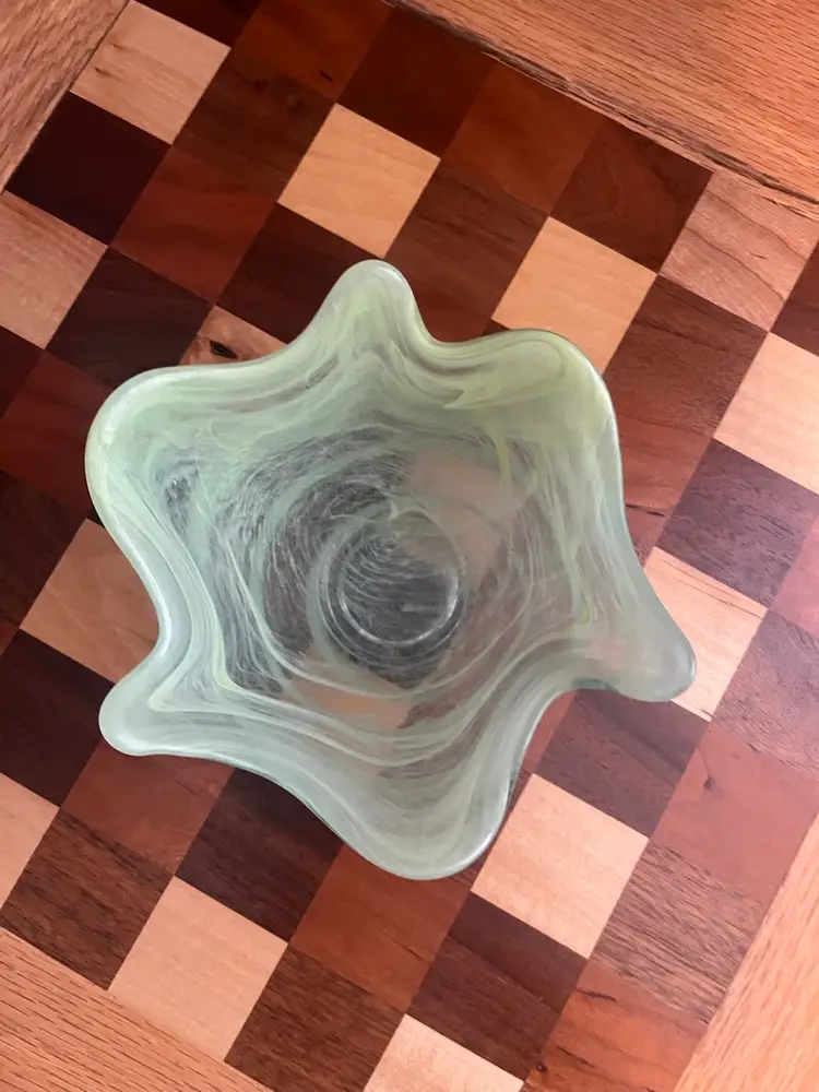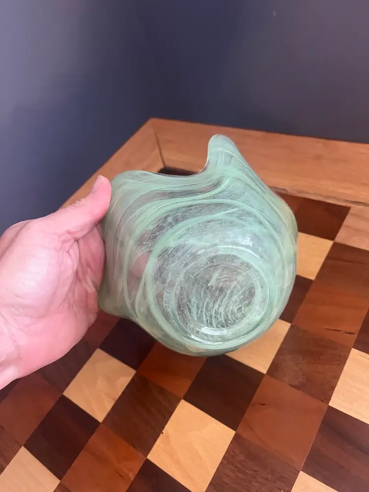 Vintage alabaster art glass bowl, pale seafoam green Around 3 inches tall, mouth 5 to 6 inches wide