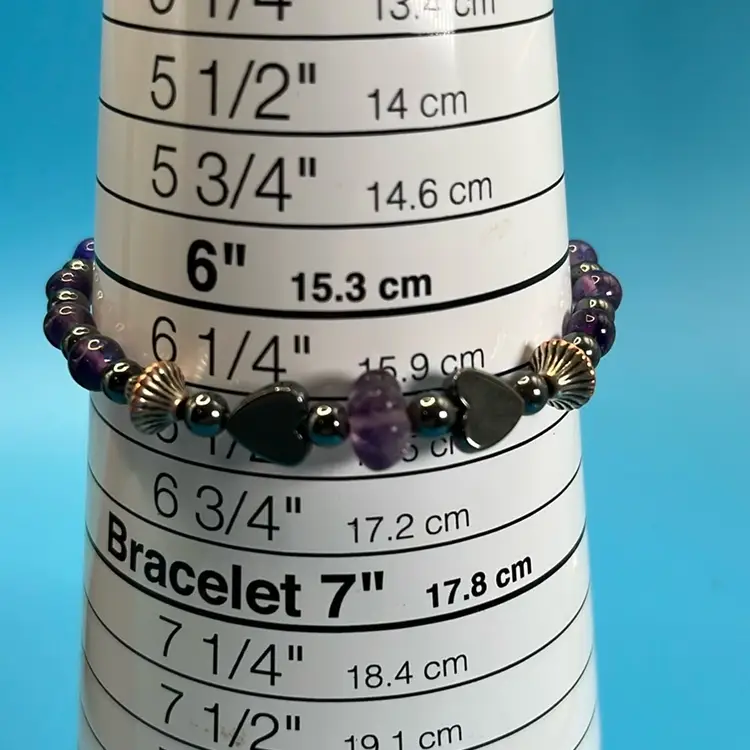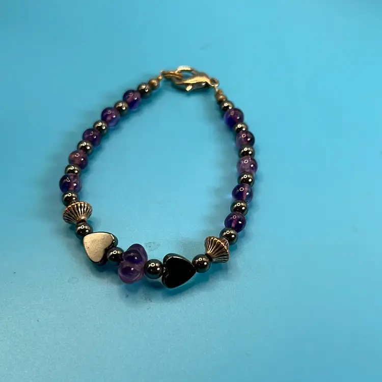 Amethyst 💜 Heart Bracelet 6 1/4” Long