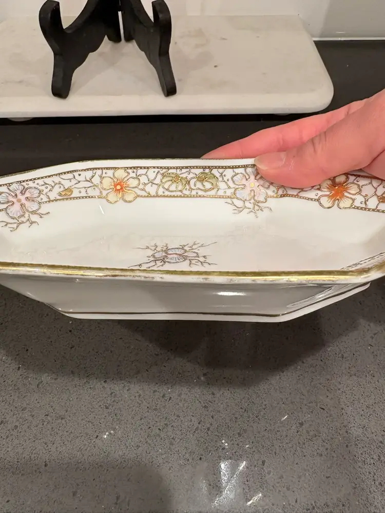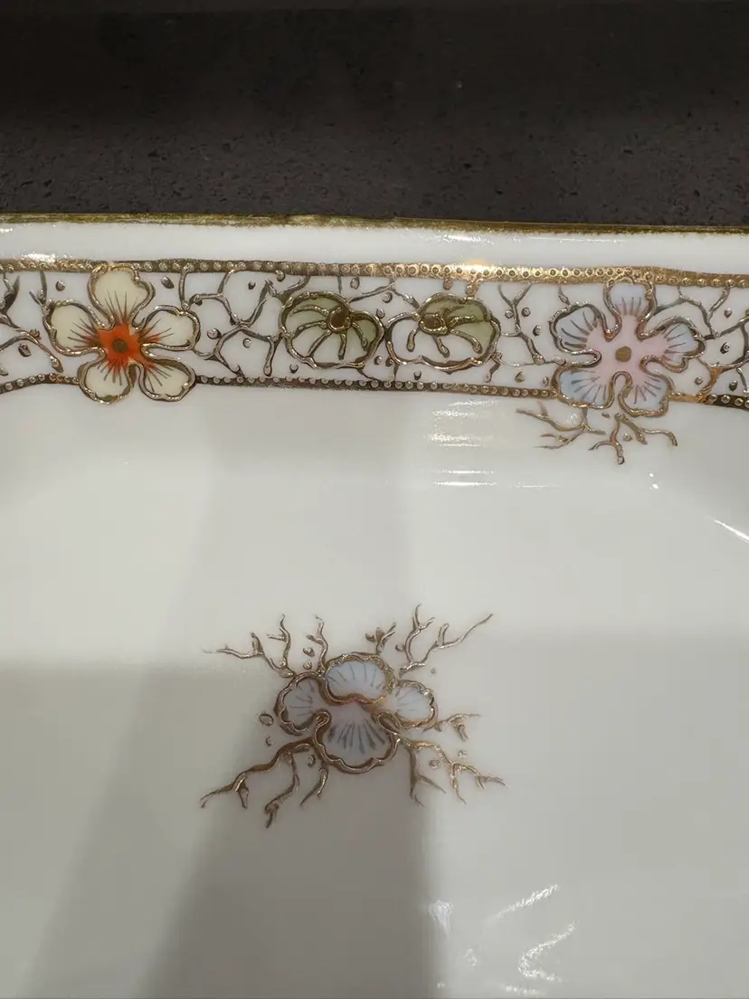 Antique Nippon Relish Dish With Gold Moriage Floral