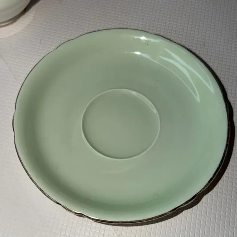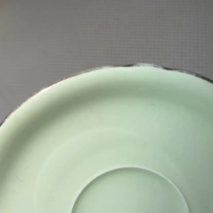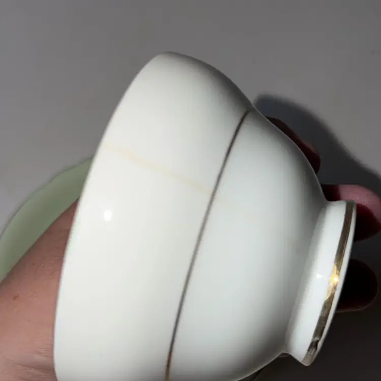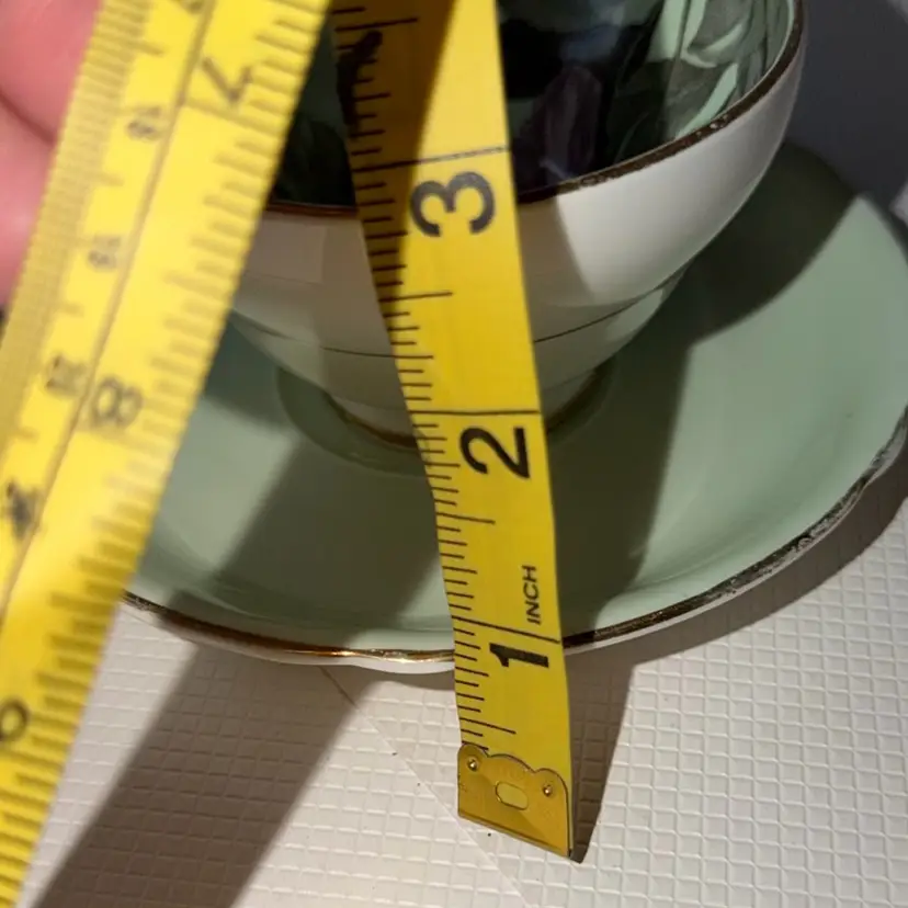 Measures 3” tall okay there is a yellow line in the cup and unsure if the means colored in it or it’s a repair