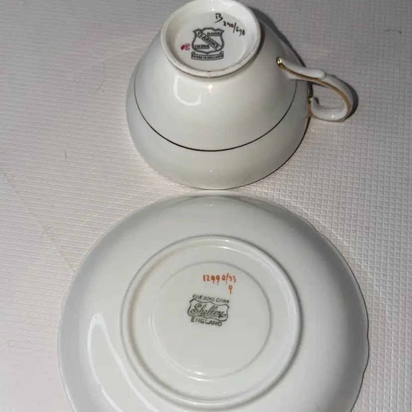 Antique Windsor Bone China England Cup & Saucer; Purple Trillium Flowers