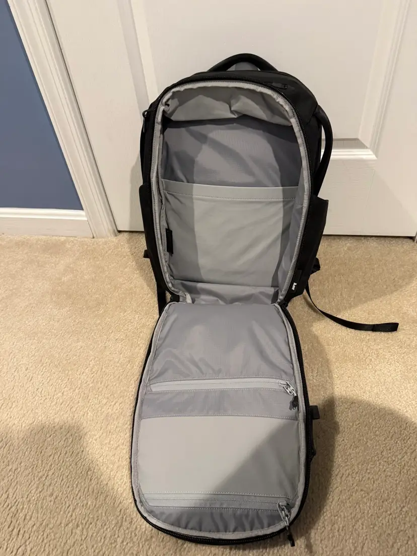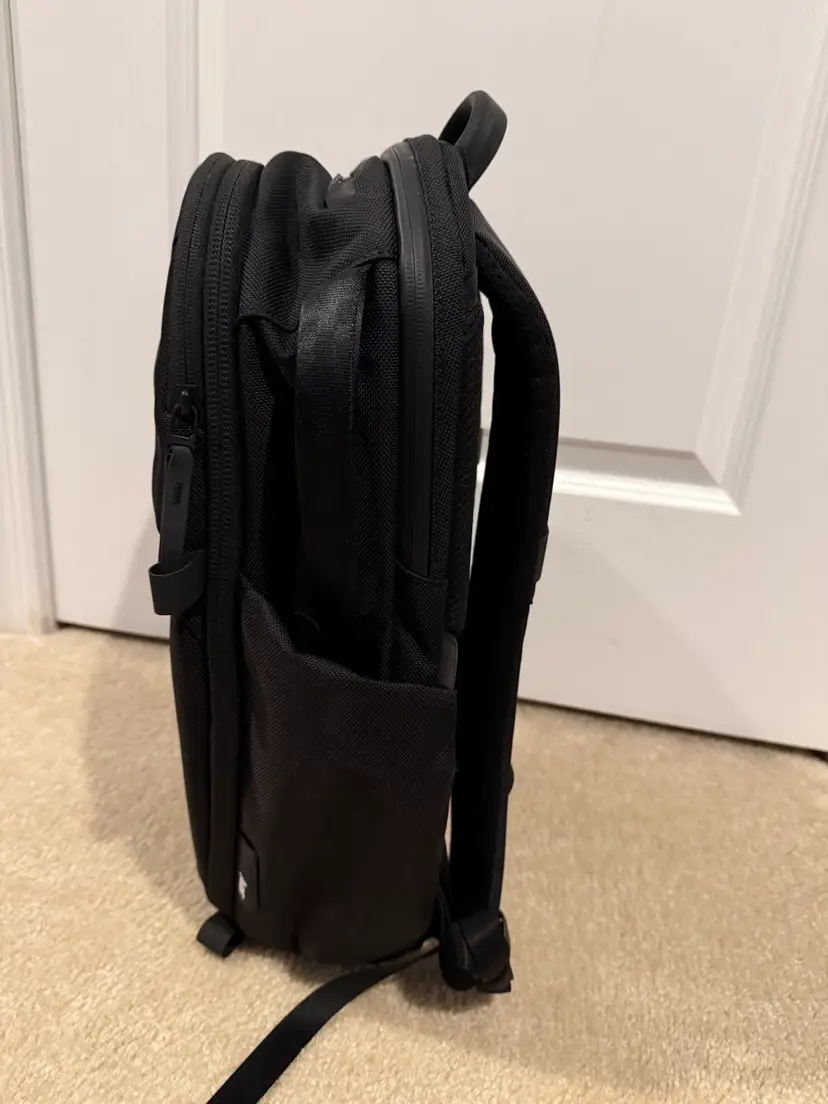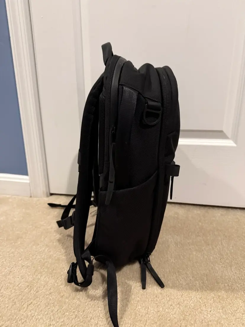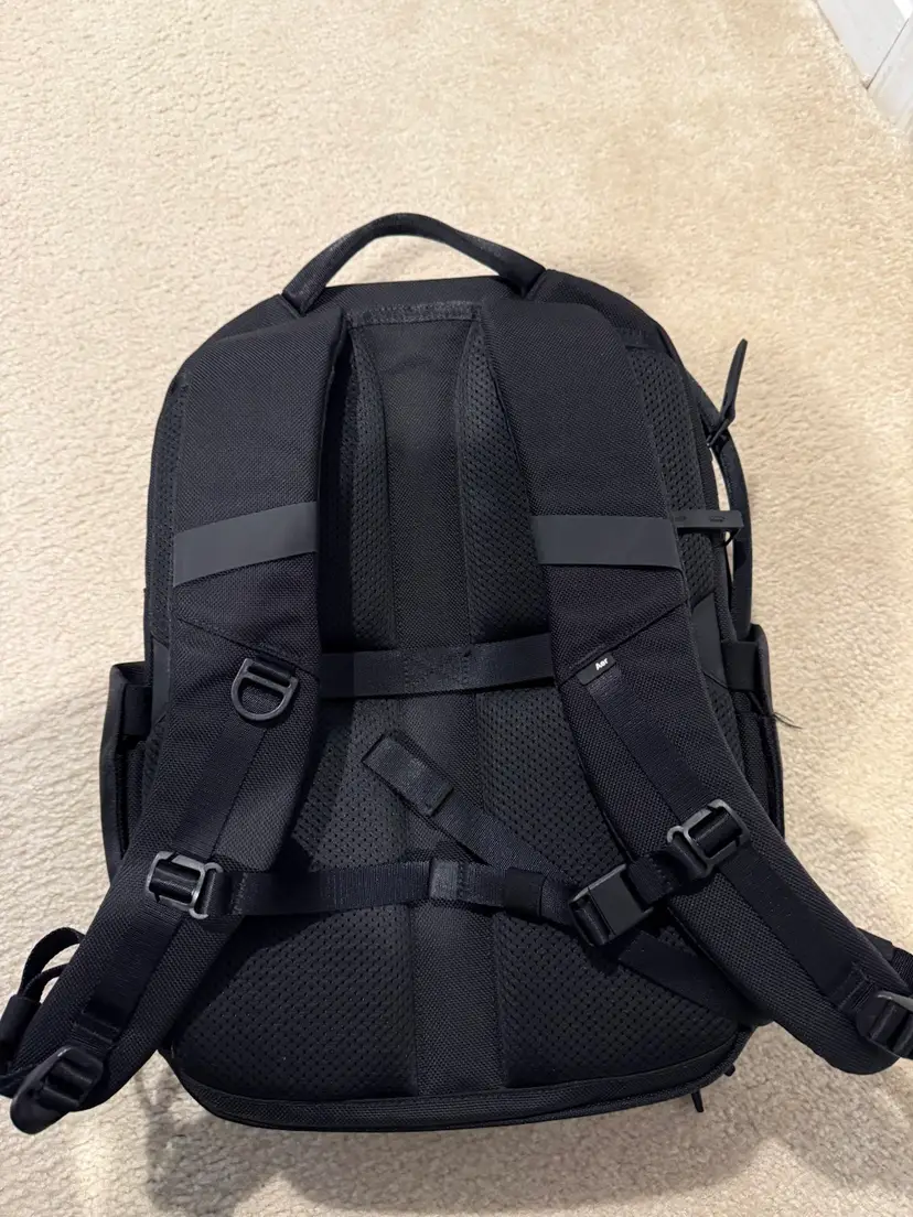 Features • 1680D CORDURA® ballistic nylon exterior (bluesign® approved) • YKK® zippers • Duraflex® hardware • Lightweight nylon ripstop liner (bluesign® approved) • Lay-flat main compartment for easy packing • Padded and suspended laptop pocket with soft lining (fits up to a 16" laptop) • Ergonomic harness system for enhanced comfort and fit • Easy-access front pocket for your everyday essentials • Quick-access top pocket • Exterior water bottle pockets • Quick-grab top and side handles • Hidden smart tracker pocket • Luggage handle pass-through