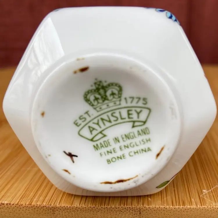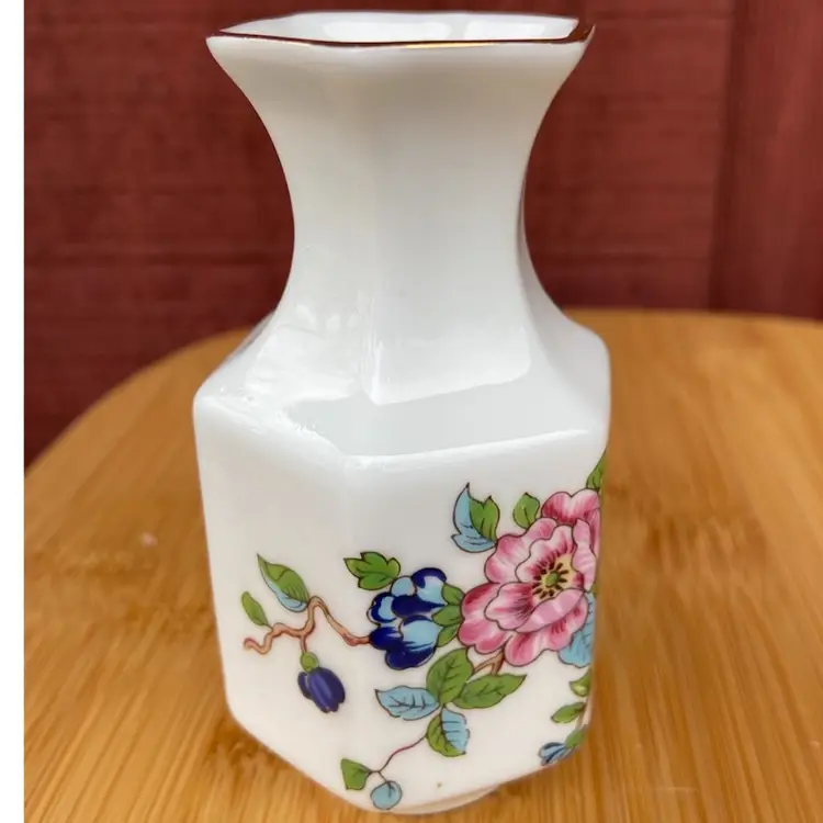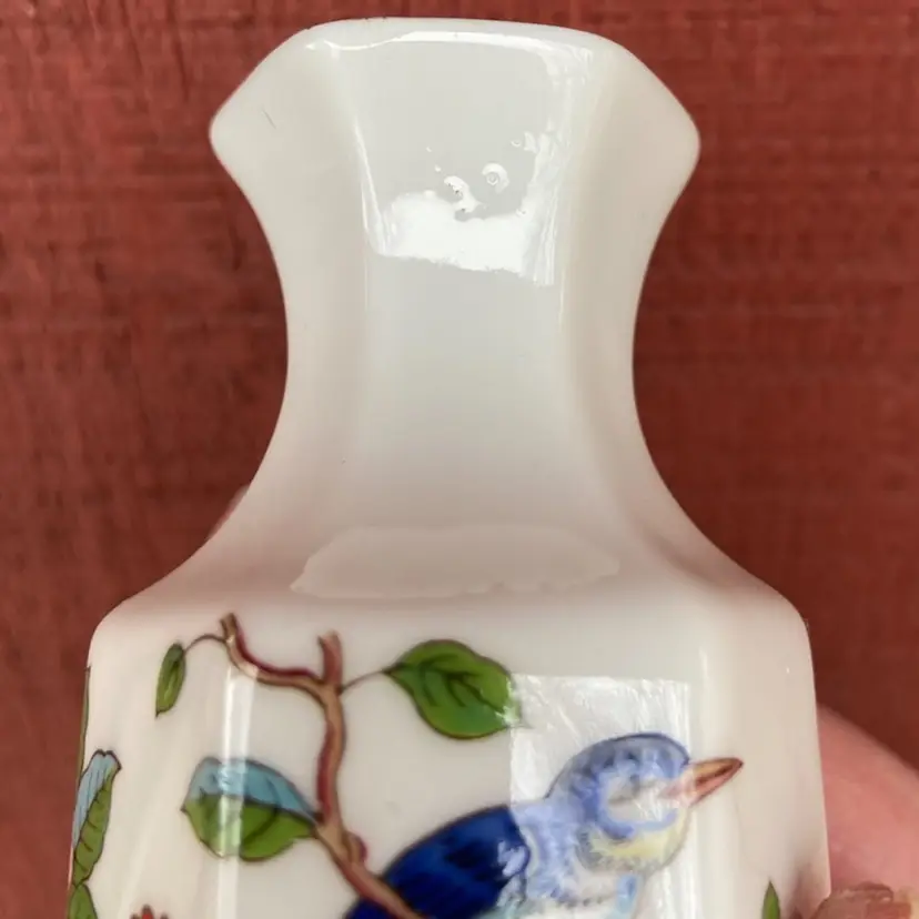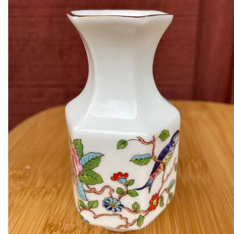 Aynsley Pembroke Vase With Bird & Floral Design. Fine English Bone China. Made In England.
