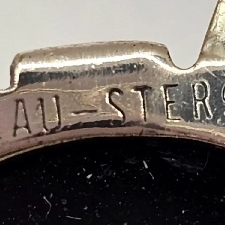 Marked on back. Good vintage condition. Approximately 1.5" long. Very light weight.