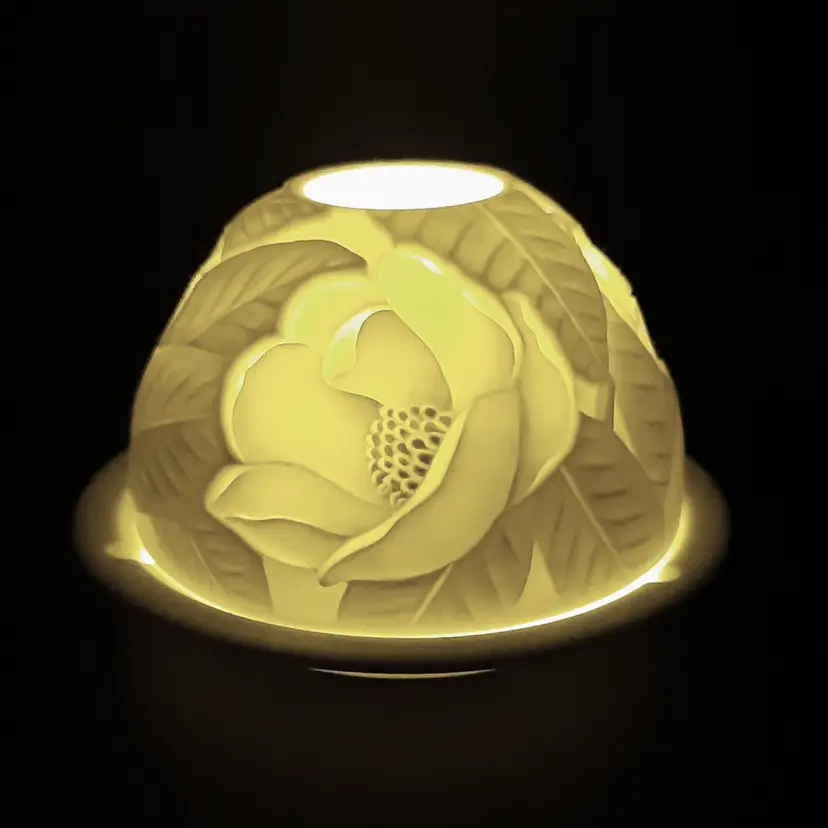This stunning lithophane fairy lamp is 4"W x 3"H in excellent condition!
