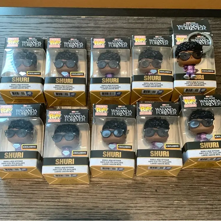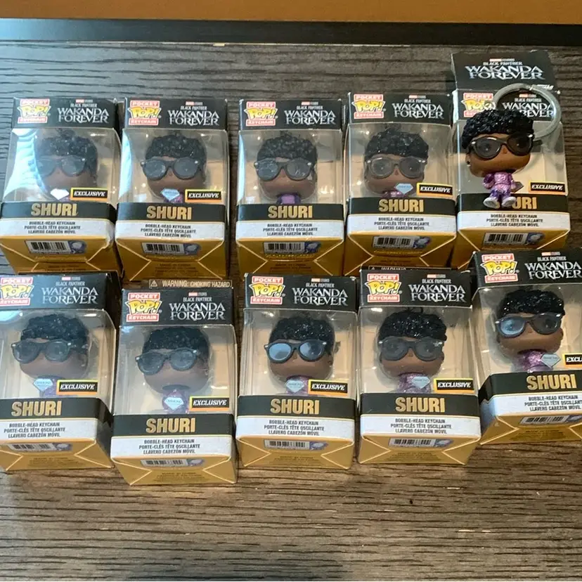 10 Boxes, (1) missing Plastic insert to hold in place. Pocket Pop Keychains with Mini Bobblehead Figure of SHURI. A Diamond Collection Exclusive