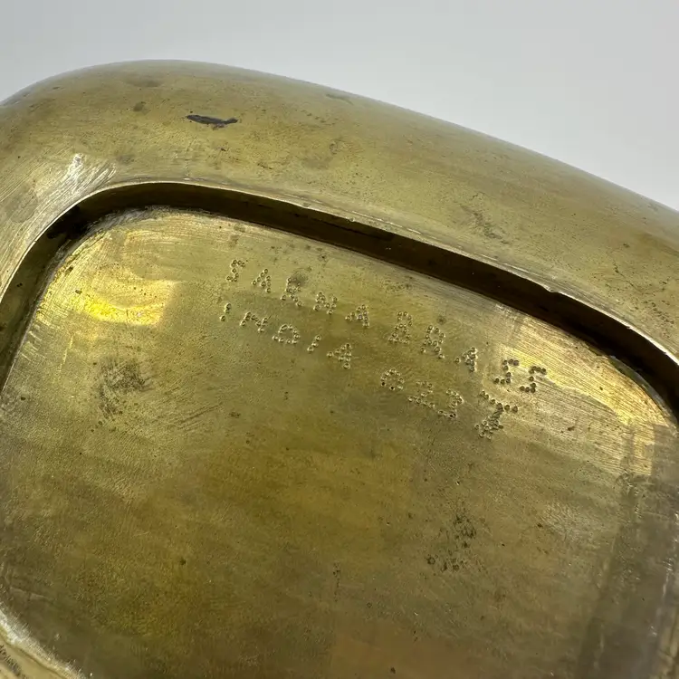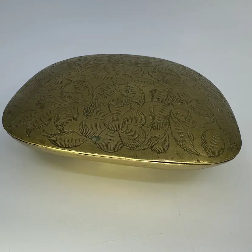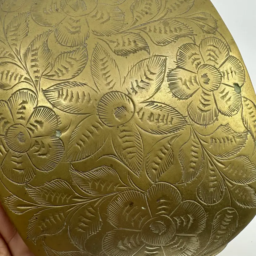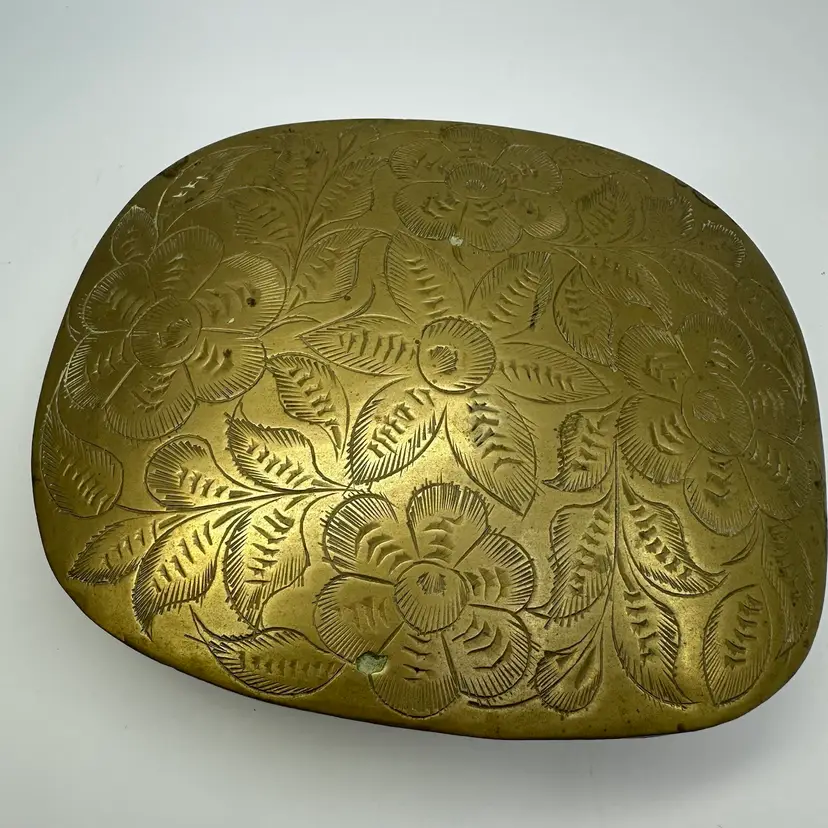 Approx 5.5” x 4.5” some patina, has a few chips on top as seen in last pic