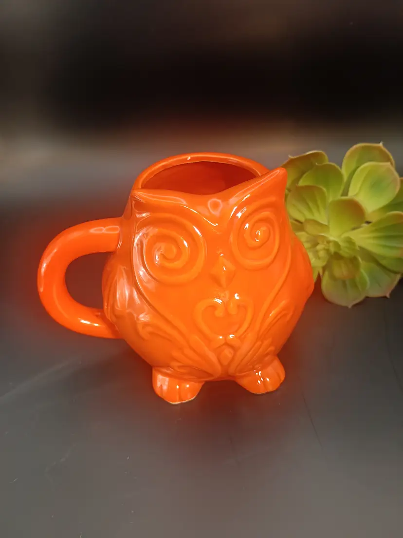 This is a super cute coffee mug. The color is amazing. Approximately 5 inches tall. No chips or cracks. This mug would be a perfect addition to anyone's collection.