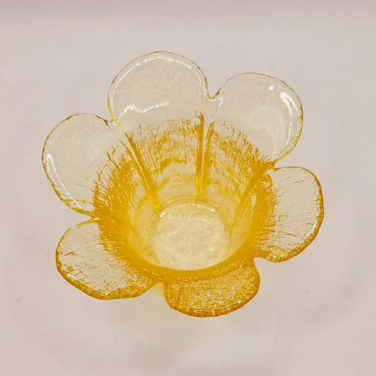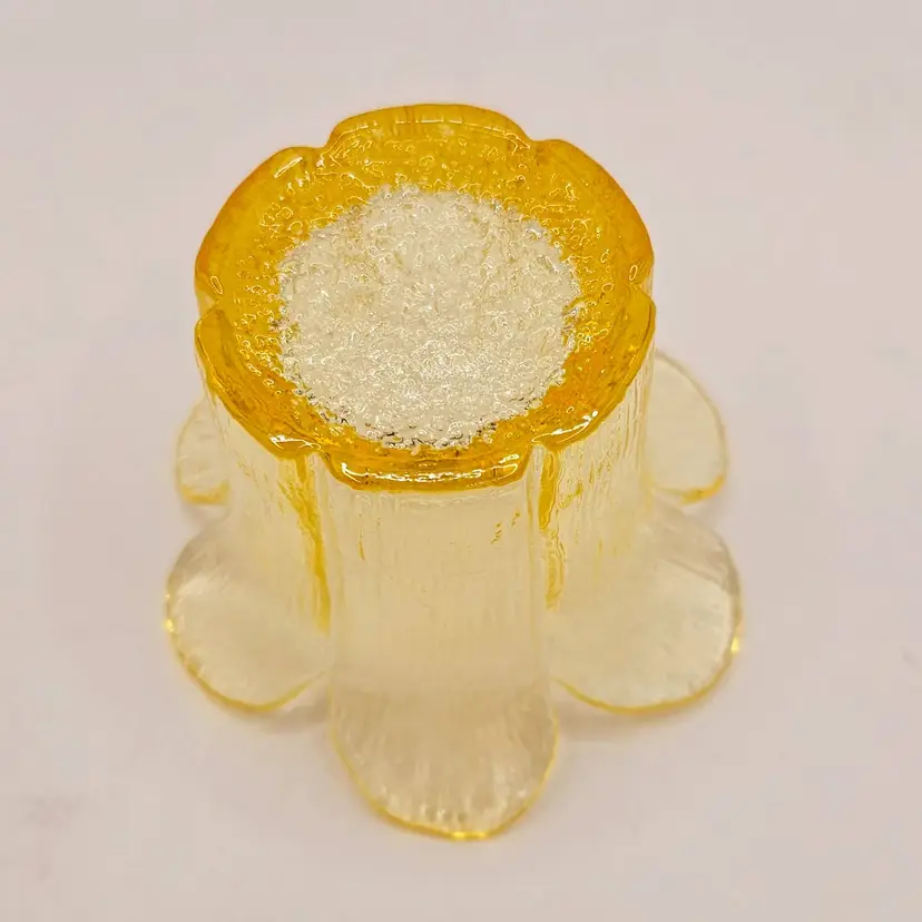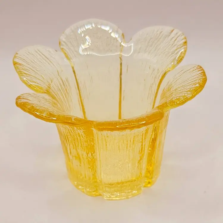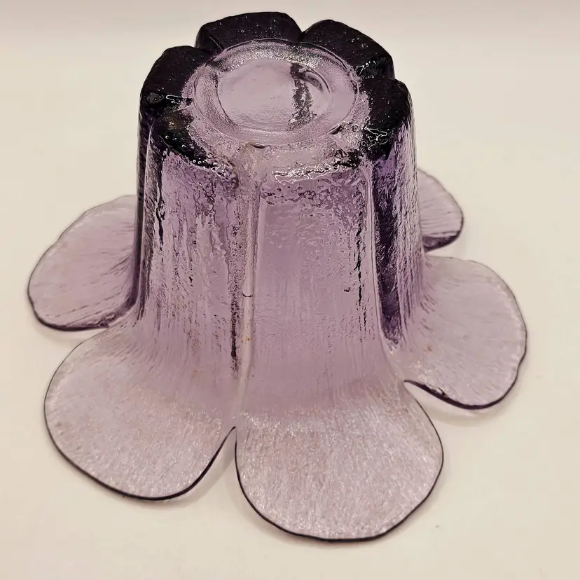 No chips or cracks. Yellow: 2.75" tall and 2" diameter at base Purple: 4" tall and 3" diameter at base