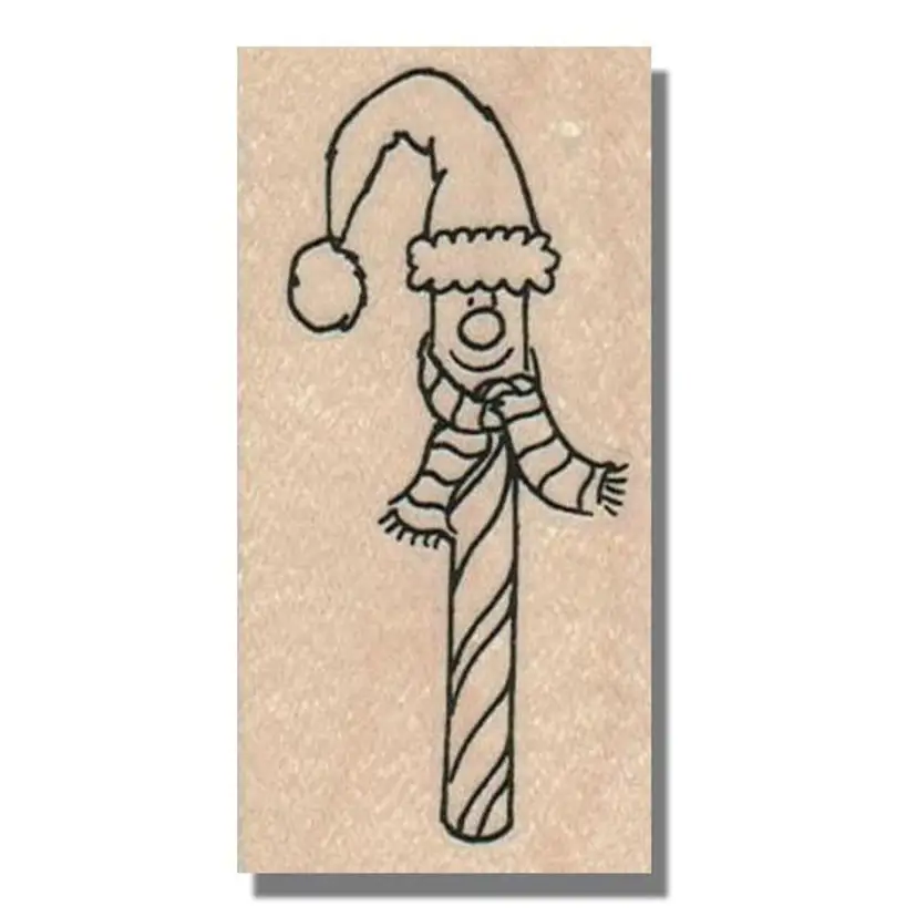 Candy Cane With Santa Hat Christmas Rubber Stamp Size: 1-1/2 x 2-3/4 inches Wood Mounted Red Rubber Handmade • Perfect for Christmas card making, gift tags, seller thank you notes, scrapbooking, journaling and craft projects