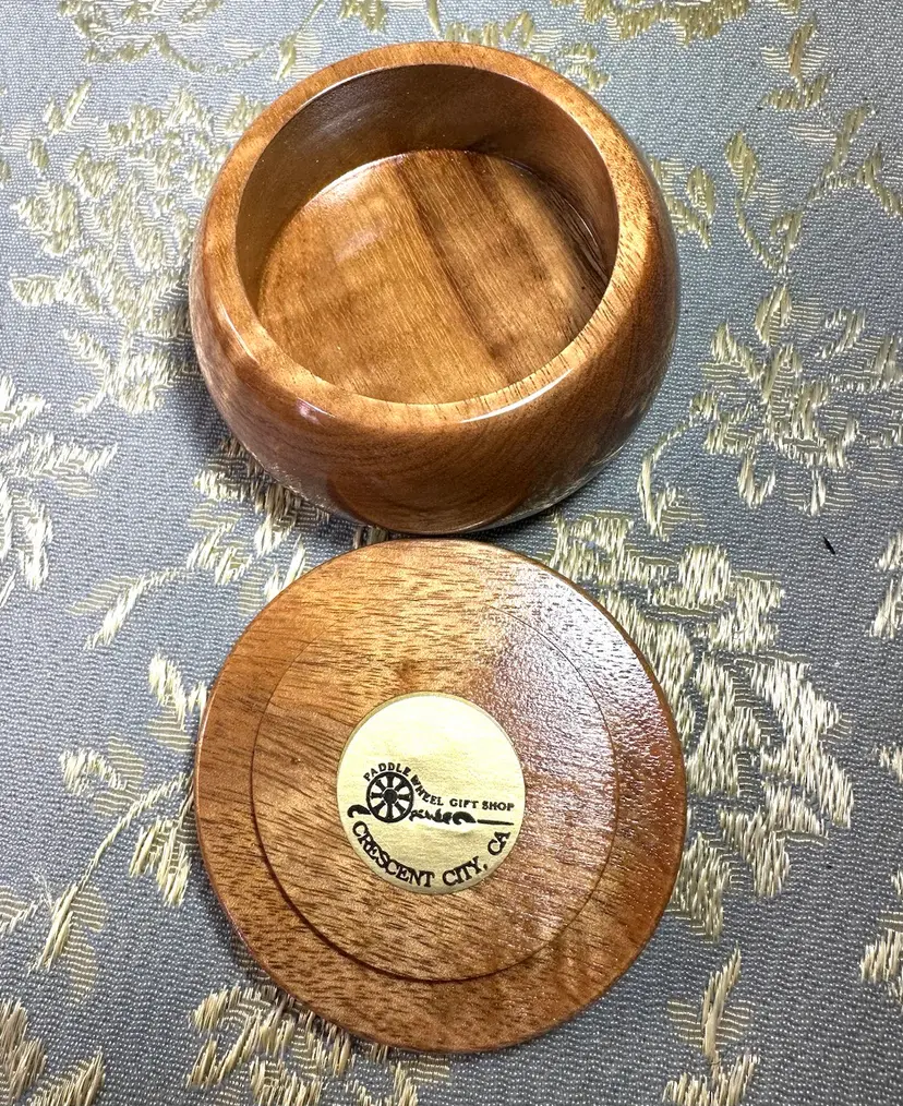 Carved Wood Trinket Box Whale in Relief On Lid from Crescent City CA Gift Shop