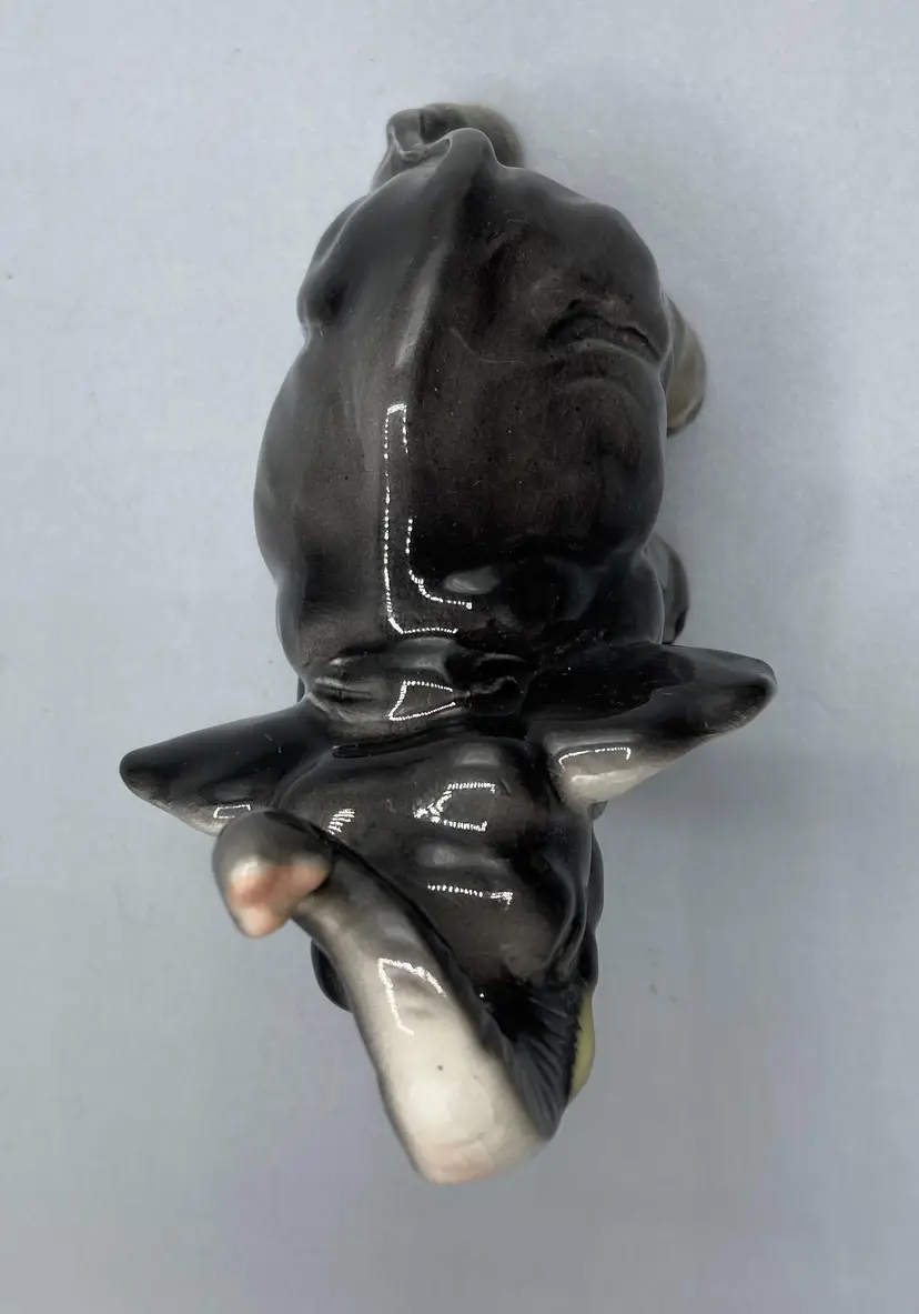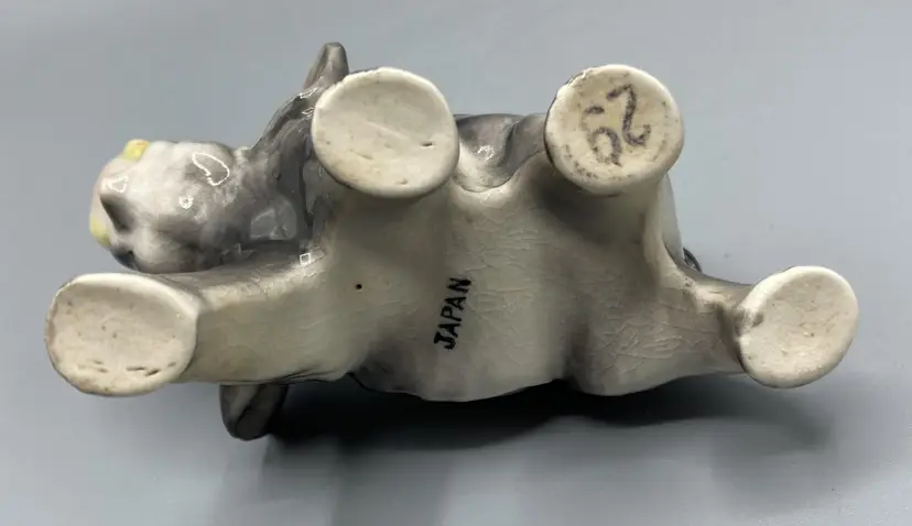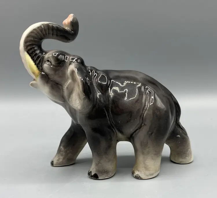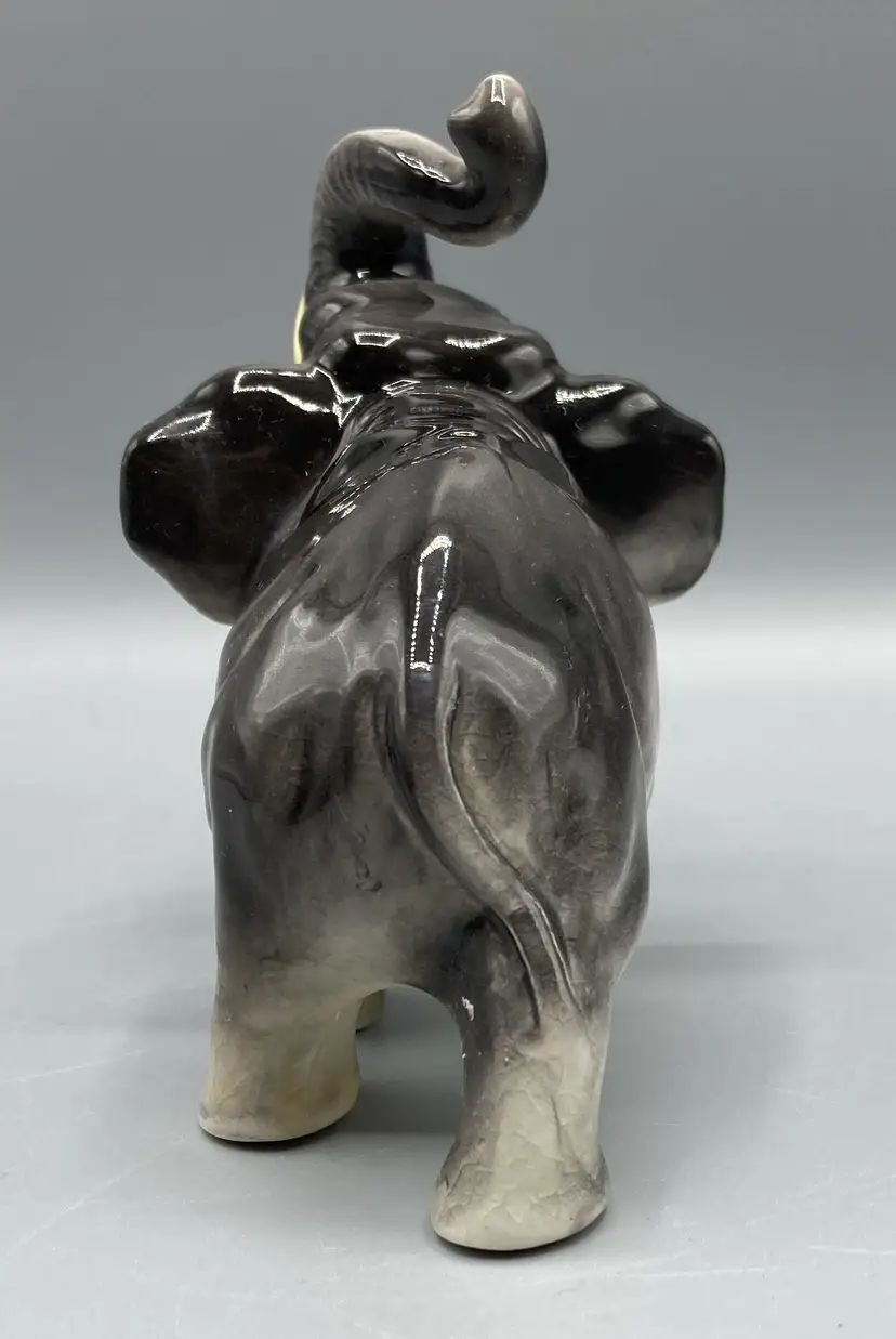 This elephant is in good condition overall. It does have a couple minor flea bite chips and there is crazing throughout. Please see pictures for specific details. This elephant measures approximately 3 1/2" tall and 3 3/4" long.