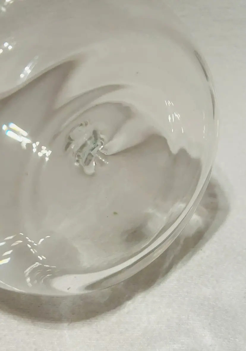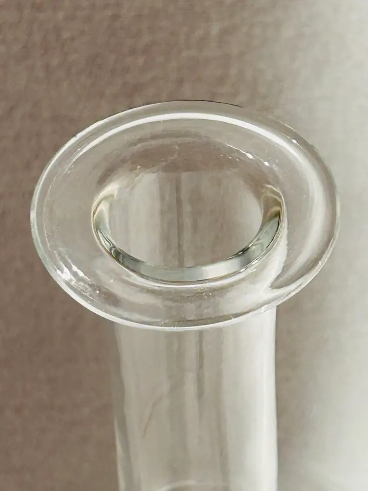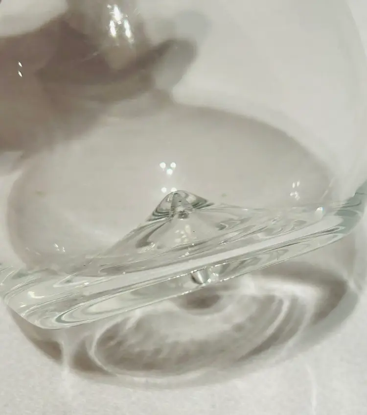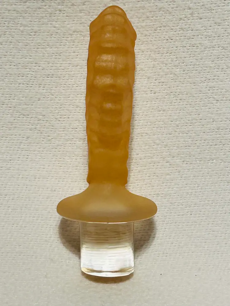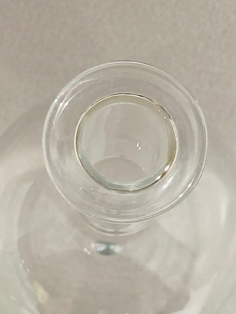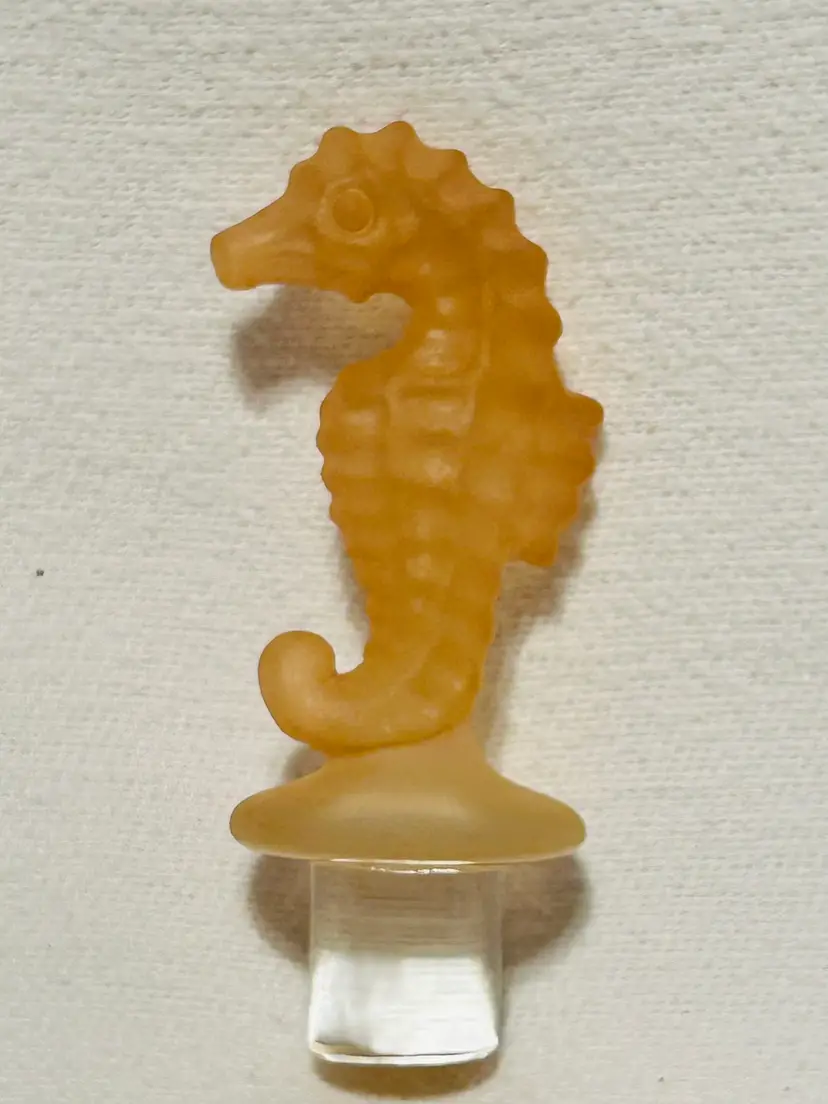 Clear Glass Decanter With A Peach Color Seahorse Crystal Stopper. 8” tall. No chips, no cracks.