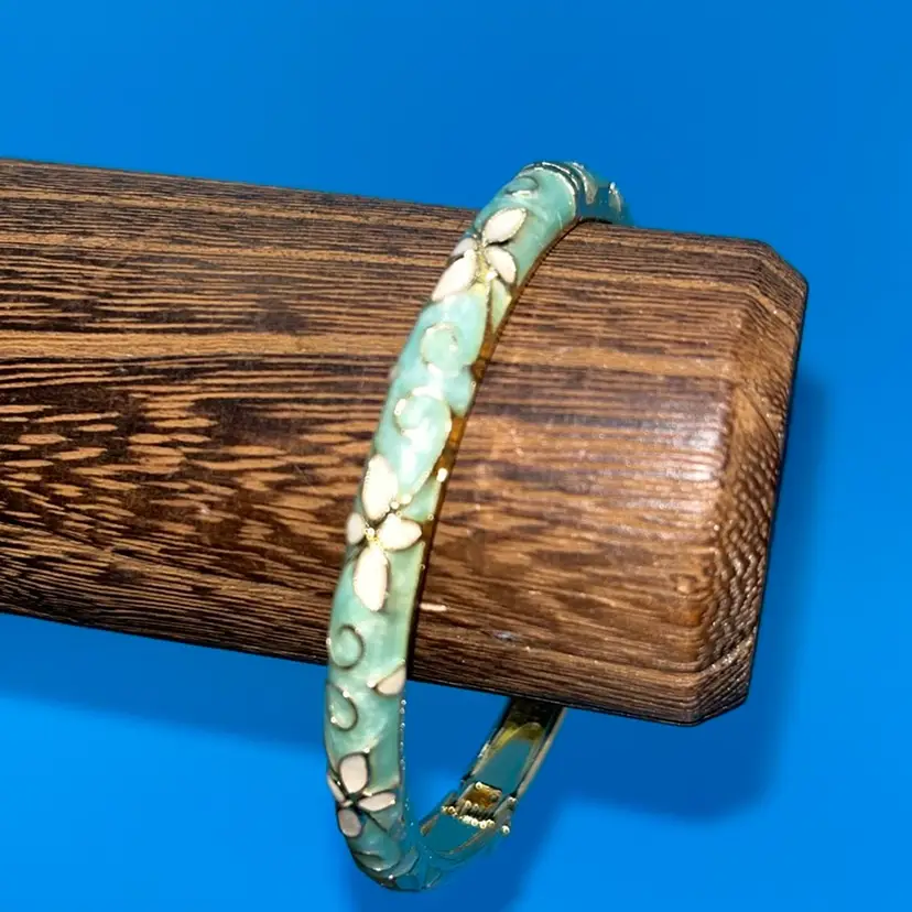 Cloisonné Enamel Hinged Bangle Bracelet 6 3/4”