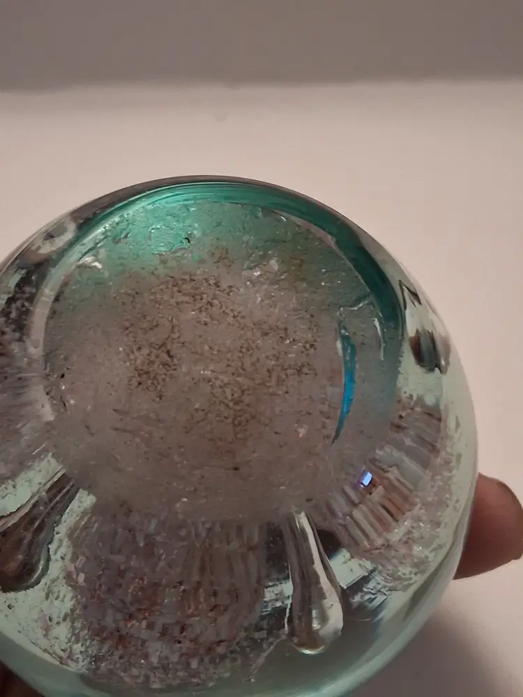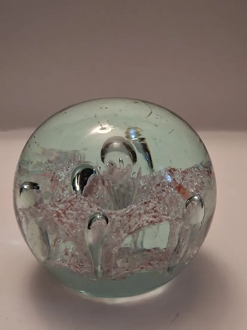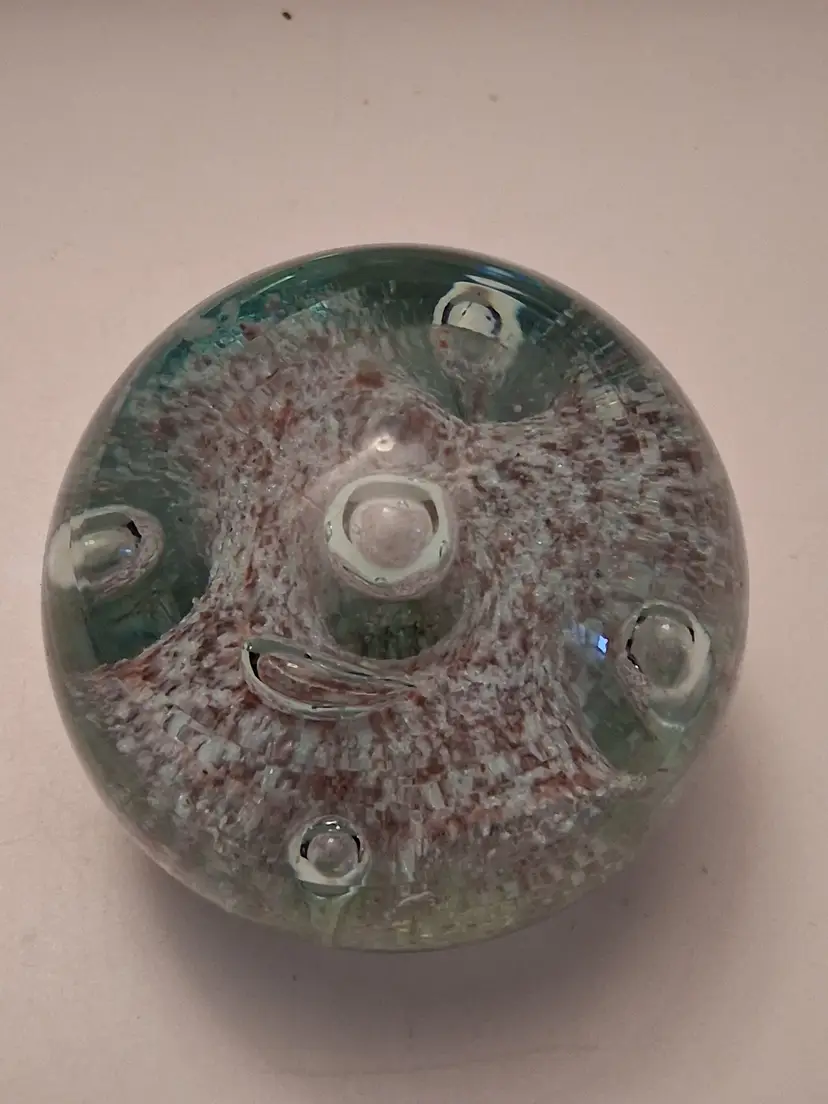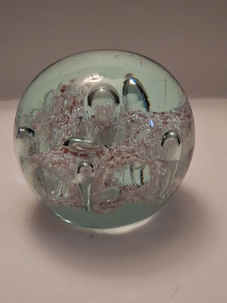 Controlled Bubble Aqua Tinted with Pink & White Spray Paperweight