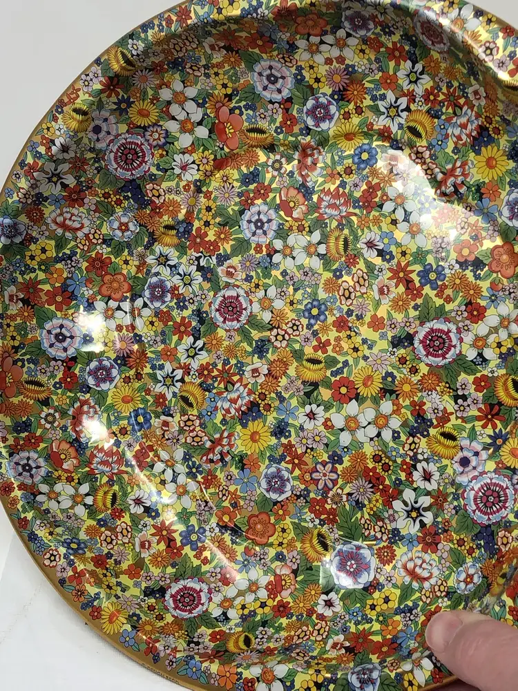 Daher Multi-Floral Tin Tray Groovy Scalloped Design