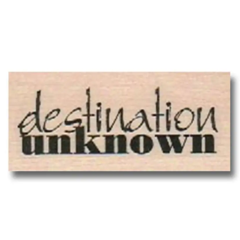 Destination Unknown Rubber Stamp Wood Mounted Red Rubber Size: 1 x 2 inches Brand new/unused • Great for scrapbooking, card making, quilt labels, crafts, journaling, tags and mixed media projects. • First purchase on District? Use this code for $5 off a $10 min purchase. ALOHAG34