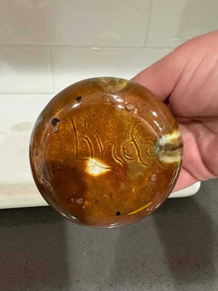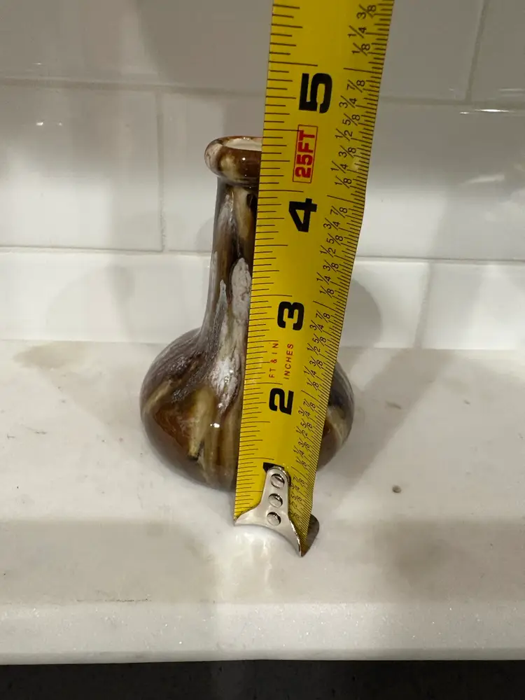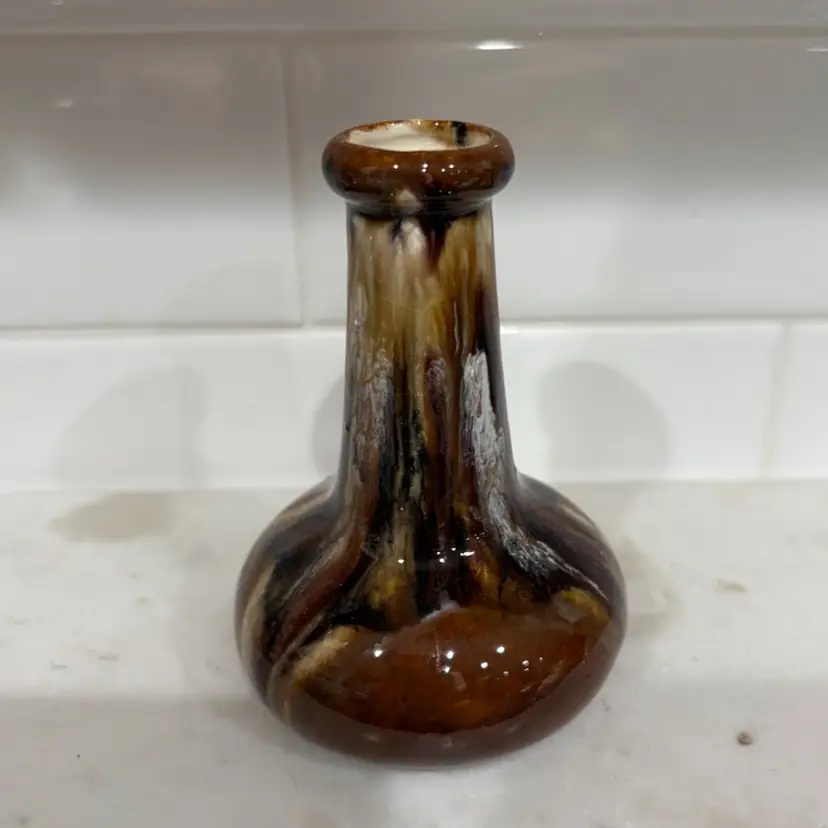 Drip Glass Pottery Mini Vase Brown Signed Linda
