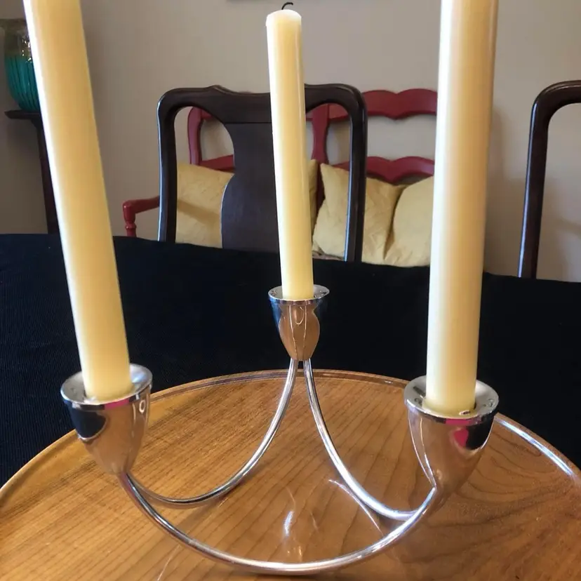 Delightful in its simplicity and design. The Duchin Silver Company was an American company, located in New York City that operated from 1944 into the 1950’s. The candle holder is weighted with lead to make it more stable.