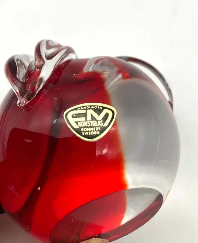BIN - FM Konstglas Art Glass Apple Peach Paperweight Sweden