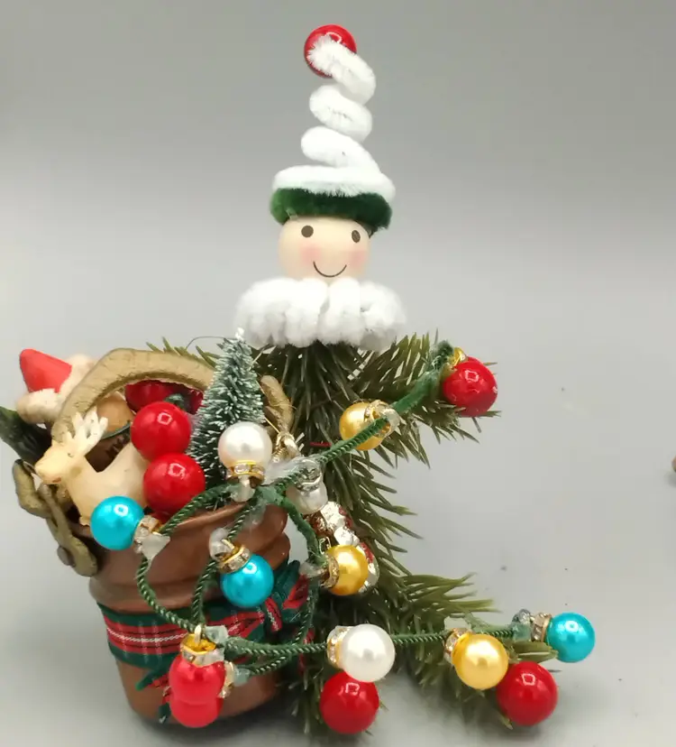 PARKISONS FUNDRAISER, This is the second group of plastic Elves that have been crafted by my 11 Year old granddaughter using plastic pine needle branches with vintage christmas toys, decorations, and jewelry. Her wish is to sell these figurines to raise money for Parkisons Research, to make her Papa feel better.