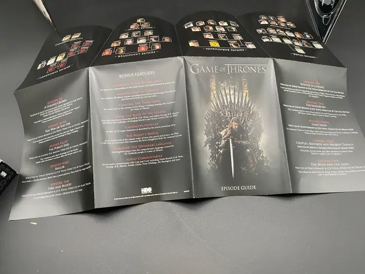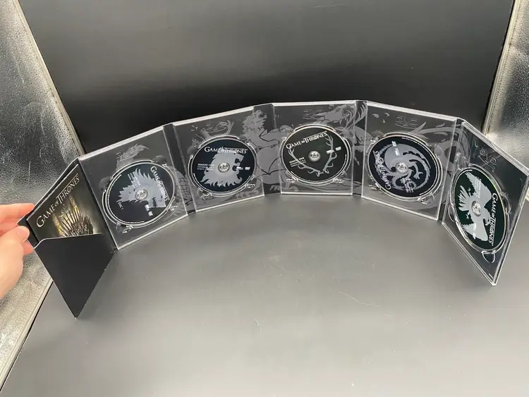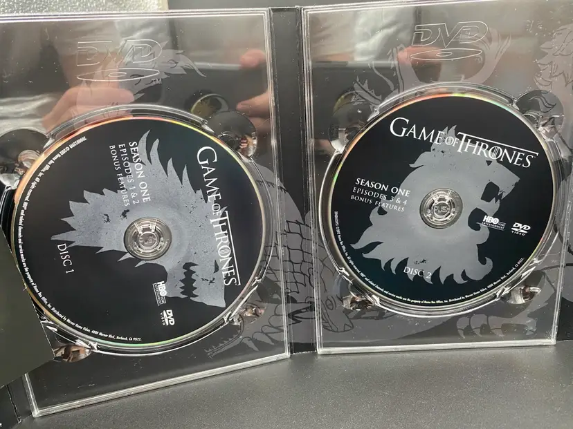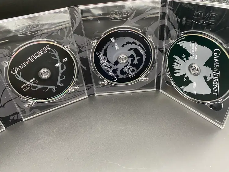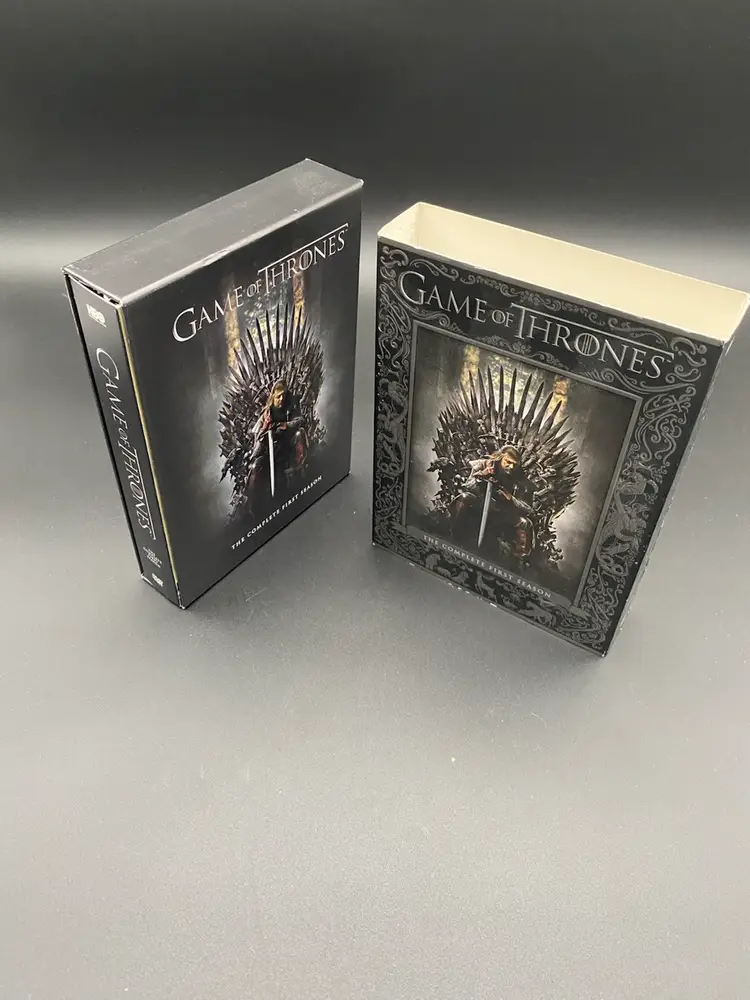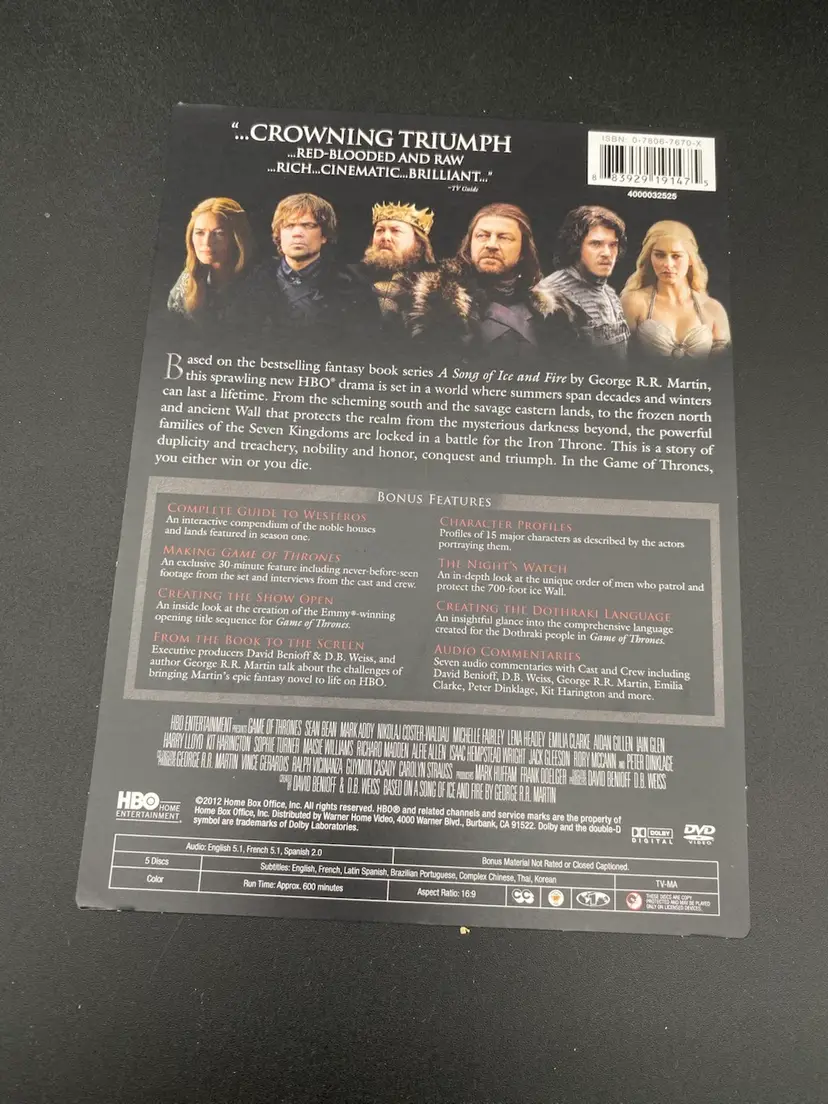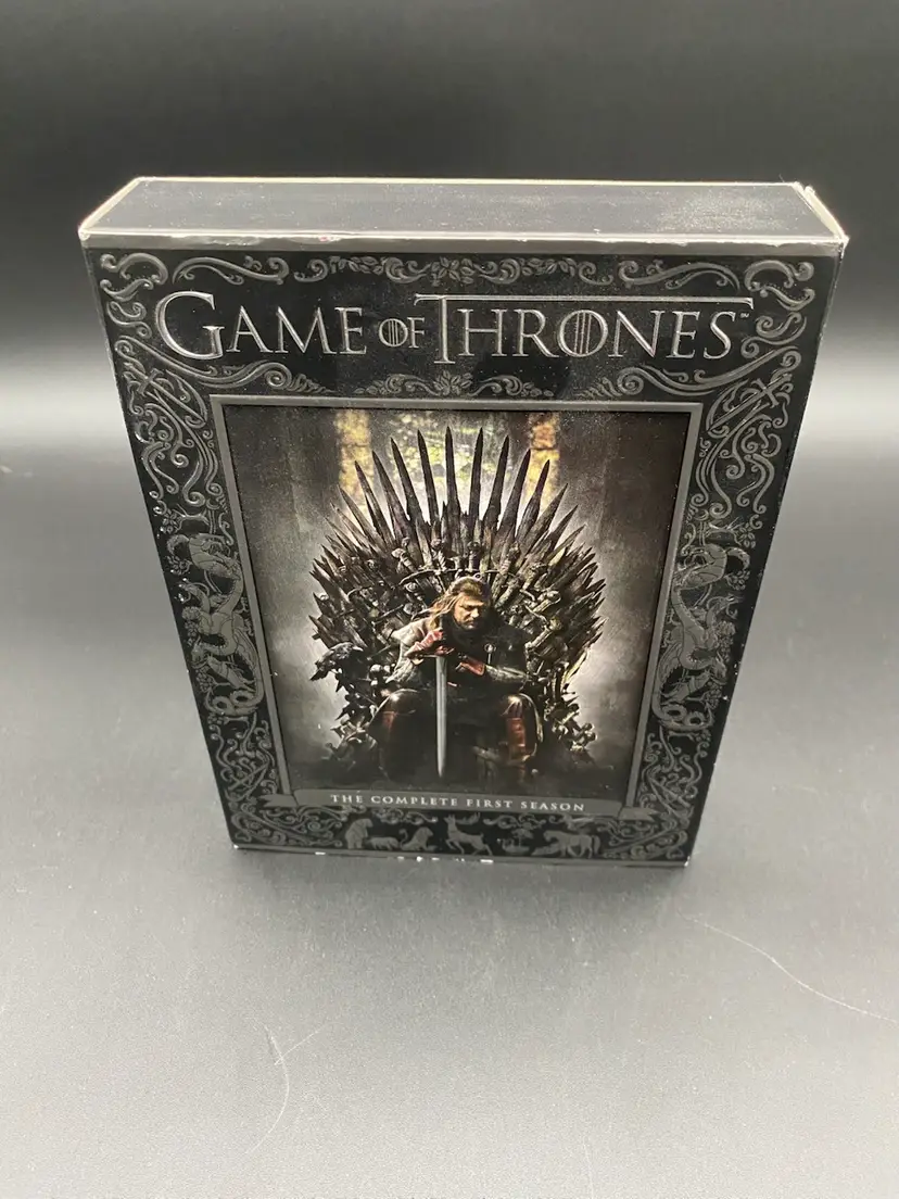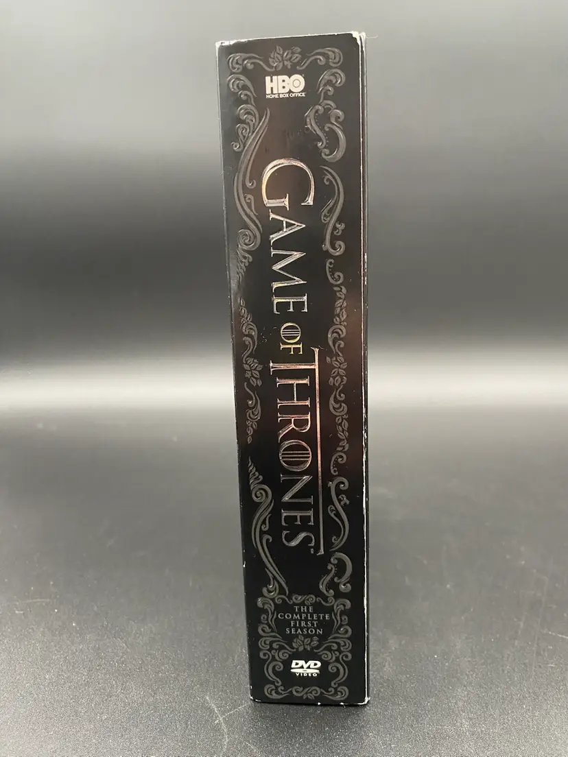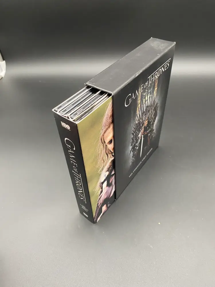 You are purchasing one Game of Thrones Complete First Season 5-Disc DVD Set by HBO. This Set is in overall great condition. Minimal Slipcover Wear. No chips or cracks on the Case. No rips or stains on any Inlay/Poster. Discs are in clean and tested playable condition.