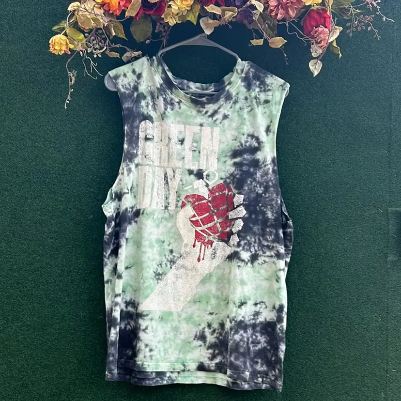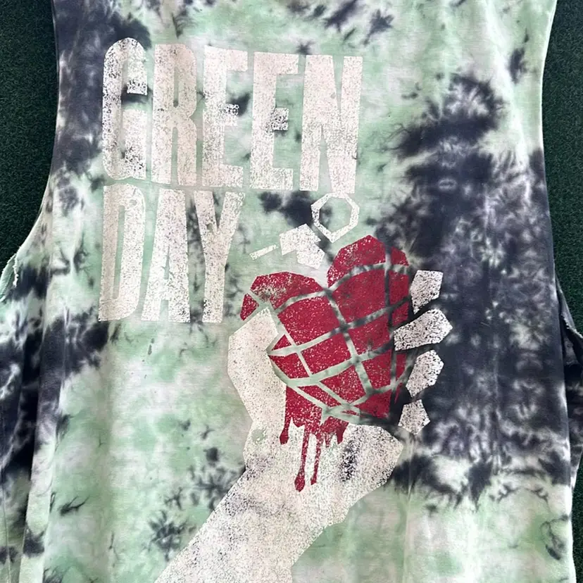 Green Day, Green And Black Tie-dye Printed Graphic T-shirt, Official Merchandise Label printed on shirt Medium Pit to pit: 22” Length: 27.5”