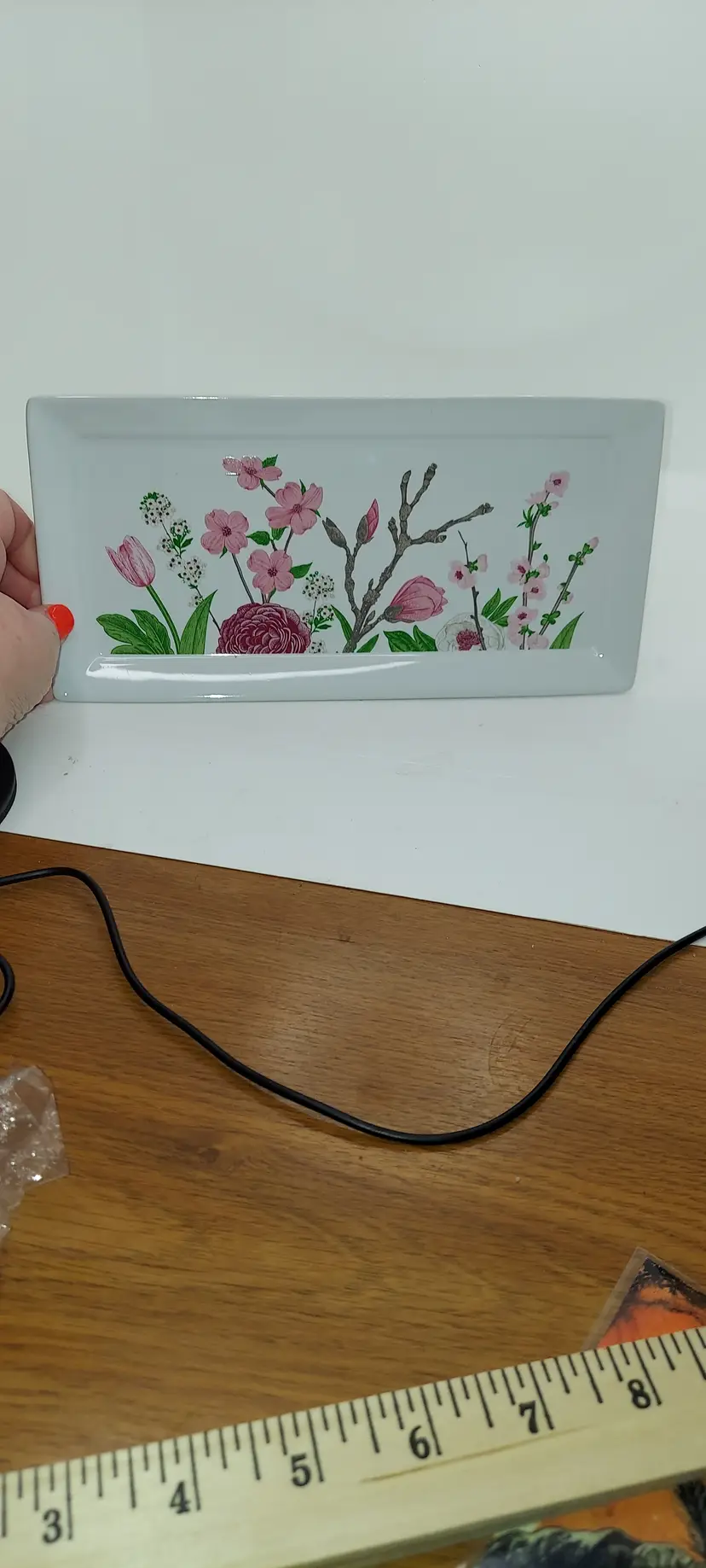 The Grove Collaborative Floral Flowers Ceramic Rectangle Retired Trinket Tray Dish is a beautifully crafted decorative collectible featuring a French country and provincial style design. Made of ceramic and porcelain, this original piece was handcrafted in the United States but is now retired. The tray dish showcases a vibrant multi-color floral pattern, adding a touch of elegance to any home decor. Perfect for storing small trinkets or as a charming display piece, this trinket tray is a unique and collectible addition to any space. Measures 5" x 10" & colors of Pink, Green and White. Such a sweet piece! This item is cross-posted on other apps so if you love it grab it now! Also please see our other items for sale as we love to bundle to save on shipping! All of our packages are packed with love and care so rest assured it will arrive safely. Please send serious offers--as we usually accept ones that are lower than competitive prices! We are easy going and Happy to work with you ❤️