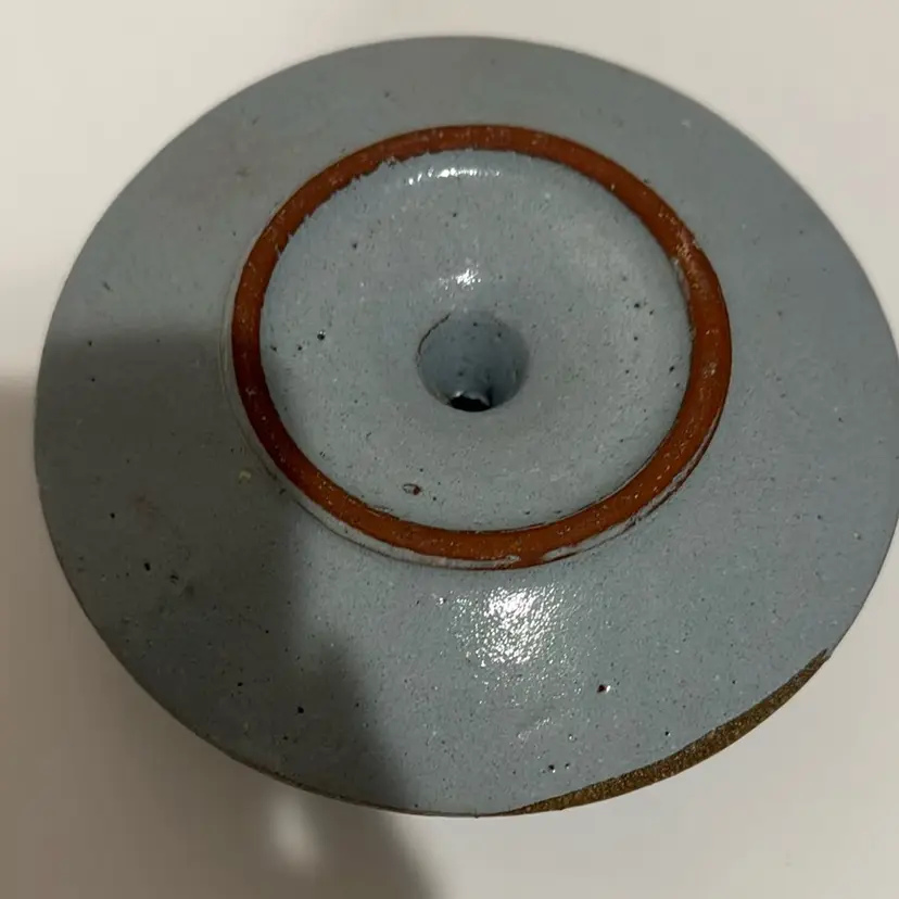 Beautiful hand painted floral candlestick holder. Measures about 5 1/2 inches across and 3 inches tall.