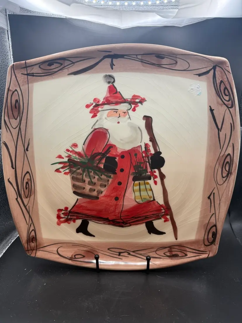 Hand-Painted Ceramic Platter Featuring Santa Claus by Vietri. - 12 in