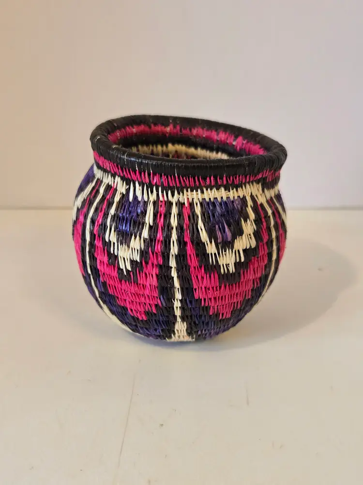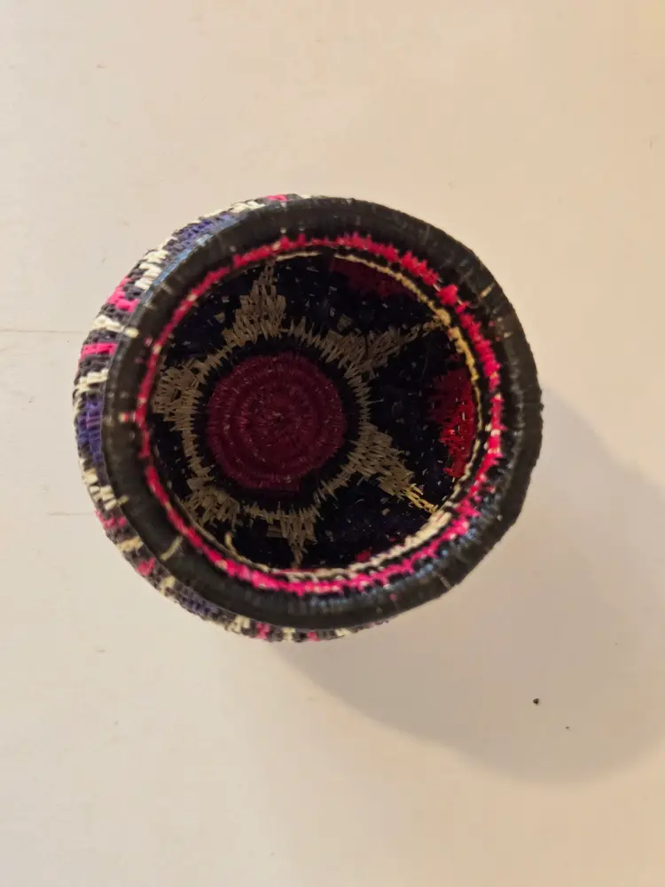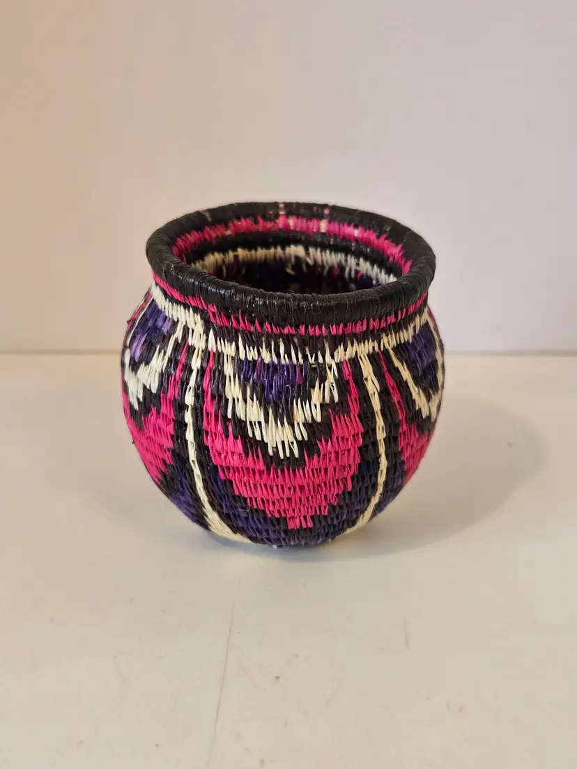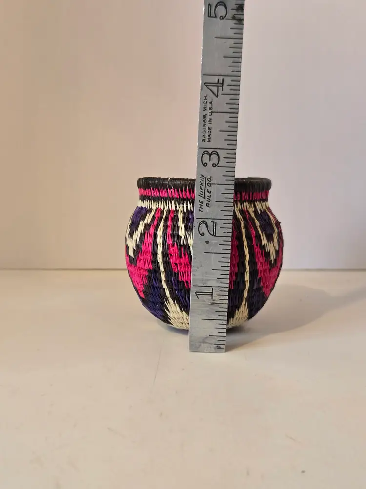 This beautiful little basket measures approximately 2.5×2.5 inches. I did not notice any damage. Please see photos.