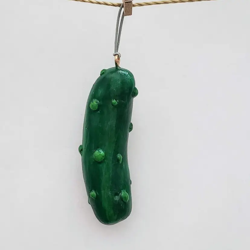 Made by hand using air dry clay, painted with acrylics, and sealed to be waterproof. Since it is made with air dry foam clay it is shatterproof as well. Small, second picture is me holding it, its about 2.5 inches from top to bottom excluding the hanger.