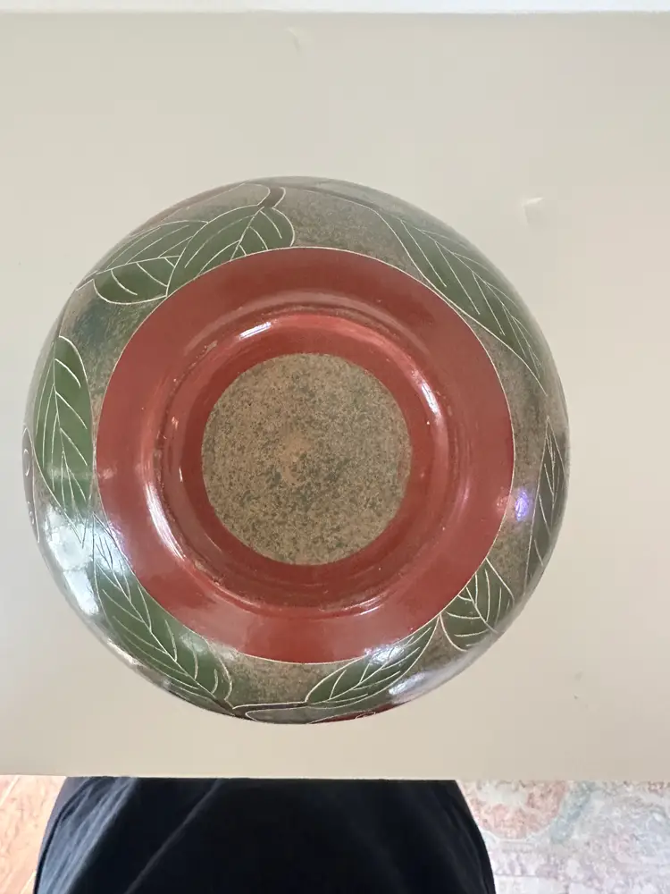Handpainted Sgrafitto Pottery Vase Butterfly Flower Leaves Ctrl Amer 6" X 3" lip