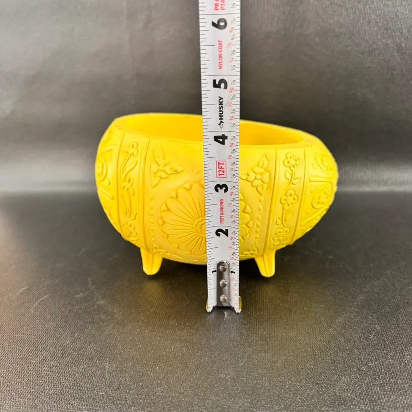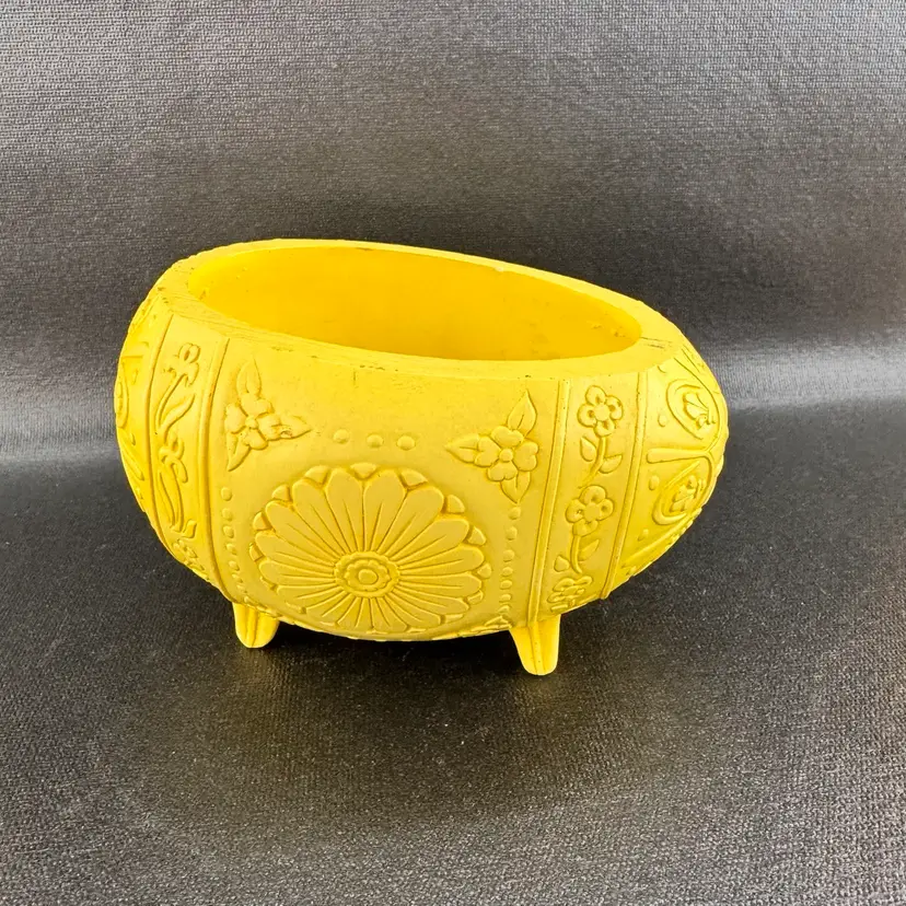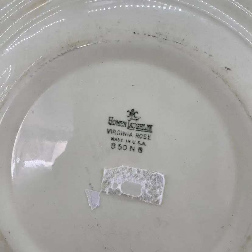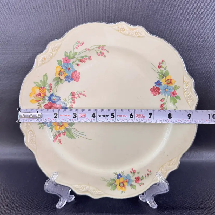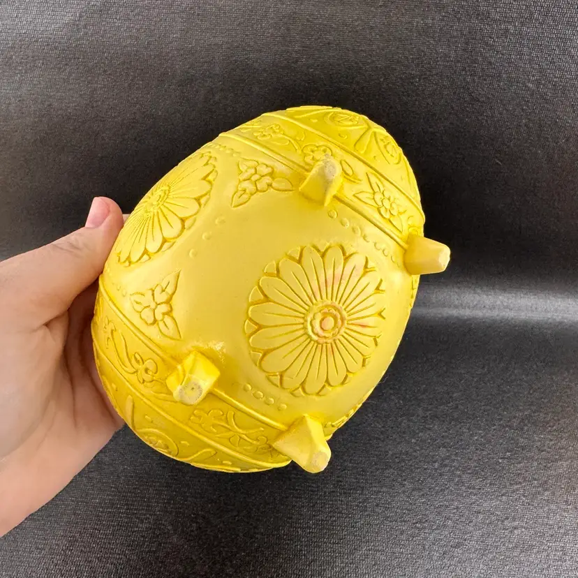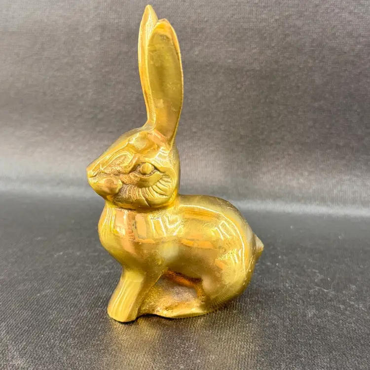 Includes a vintage Homer Laughlin floral plate, brass bunny rabbit figurine, and a 1983 FTD egg planter. All in good condition.