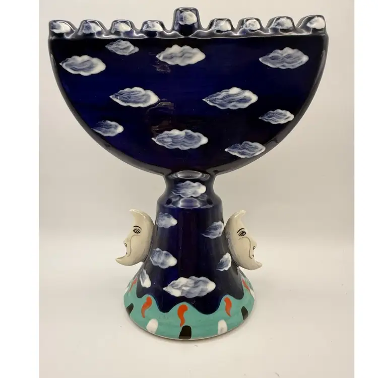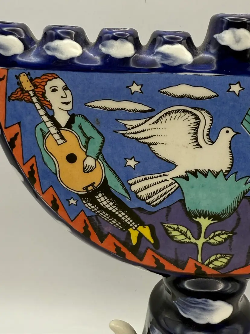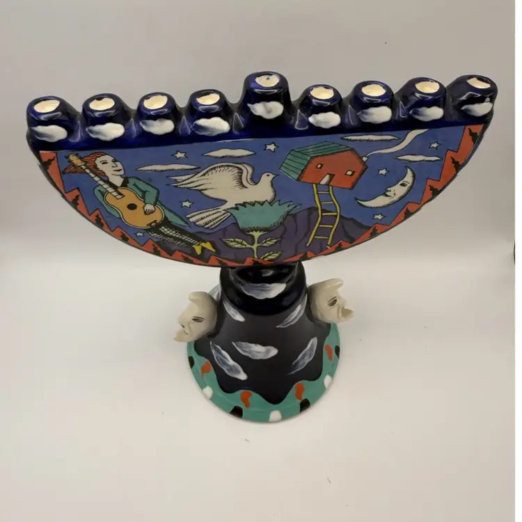 HTF Garson Pakele Handmade & Painted Ceramic Menorah Candleholder Judaica Art