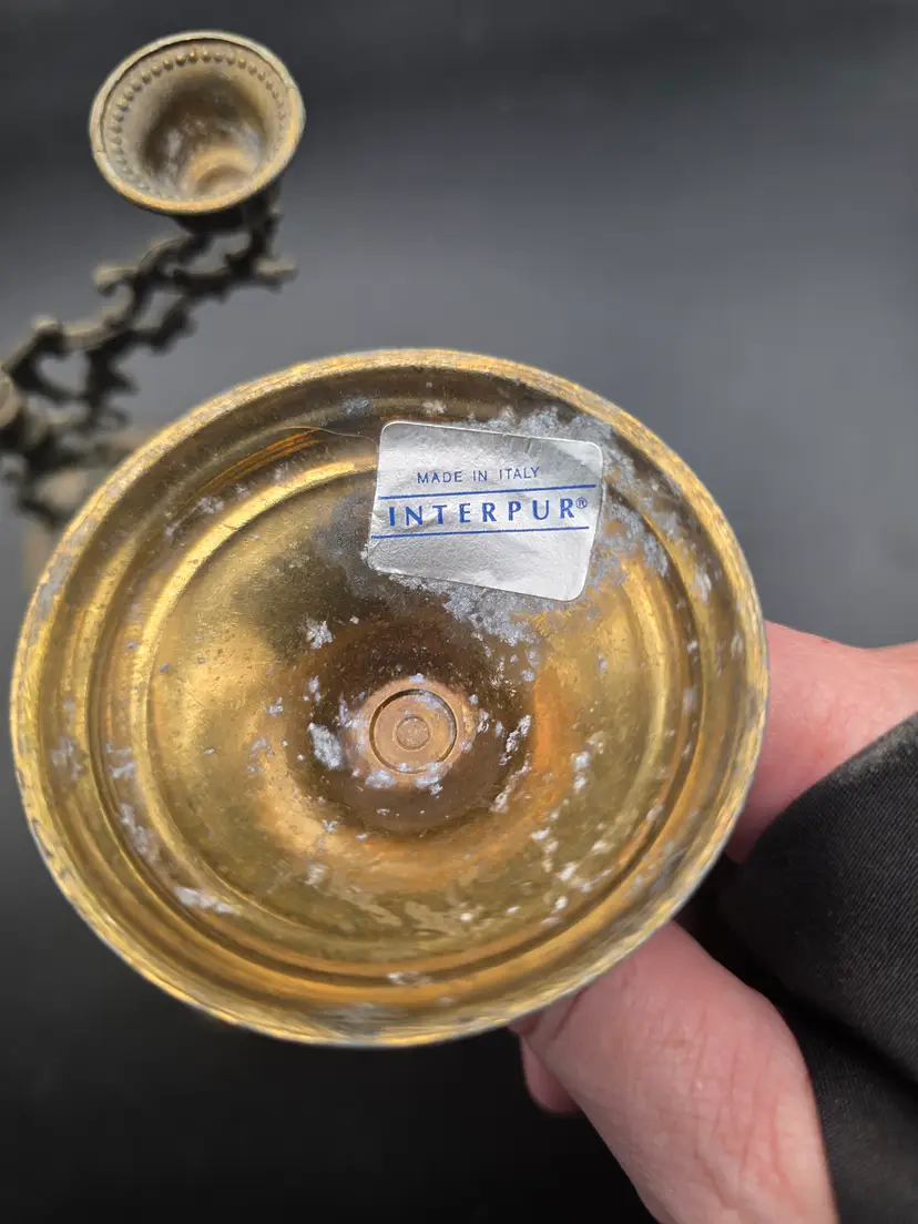 Made in Italy. These need to be polished. Sold as a set. Holds small candles.