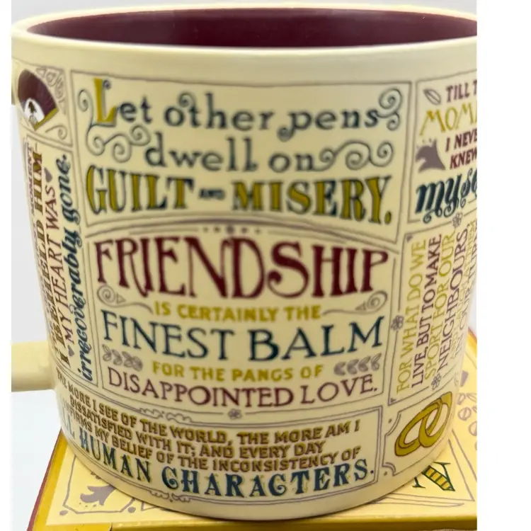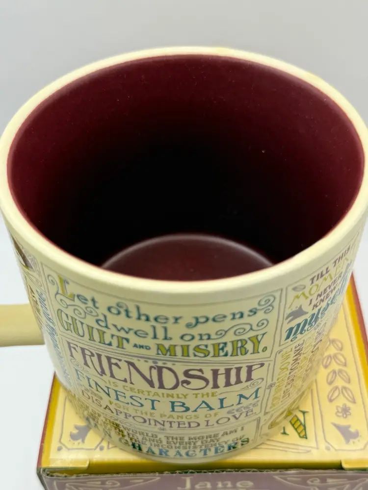 Jane Austen fan mug . Decorated with some of her most famous quotes. Comes with original box 2017 No chips or cracks 12oz.