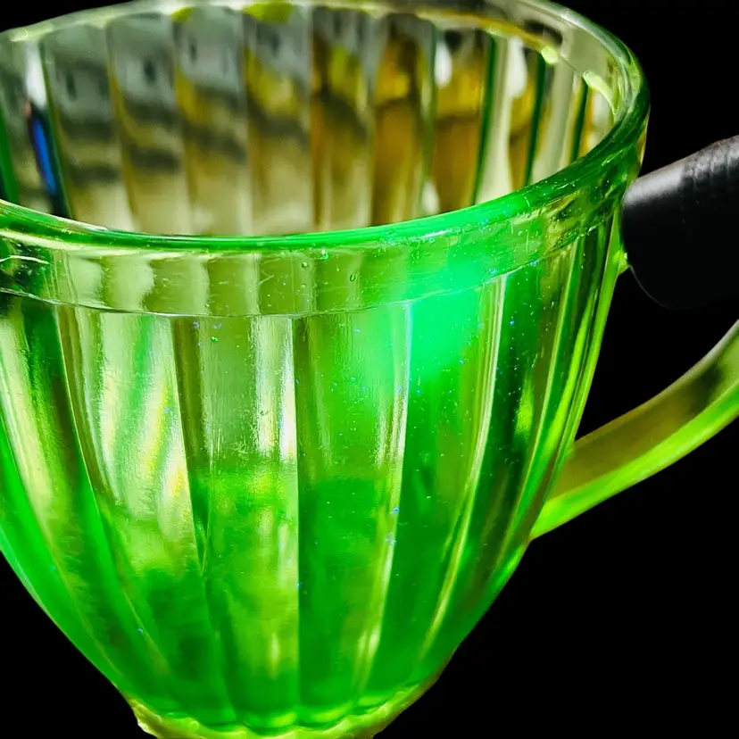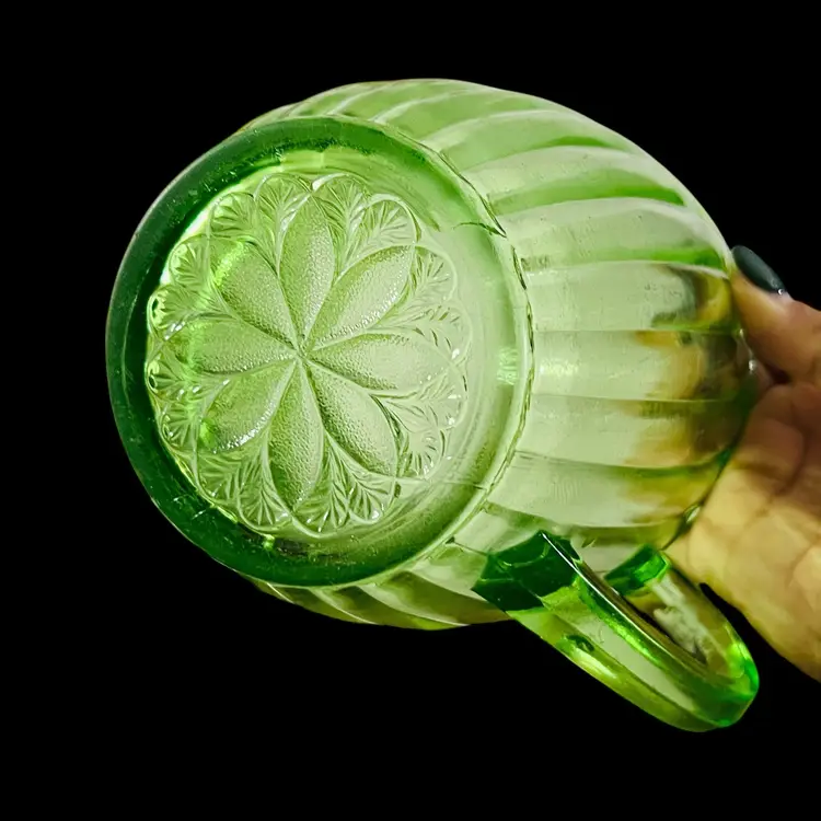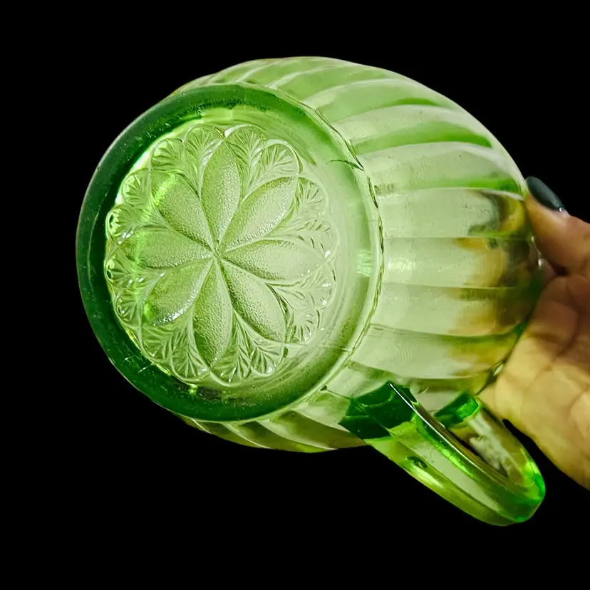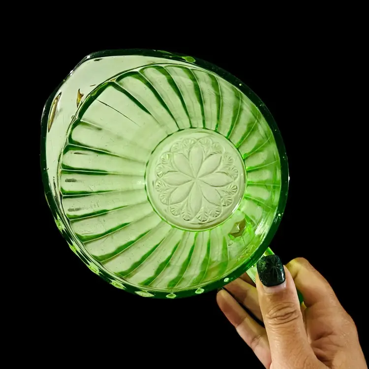 Slight scratches. Some faint hard water stains towards the bottom. In overall great condition for age. Diameter is 5 inches and height is 5 inches. No chips or cracks