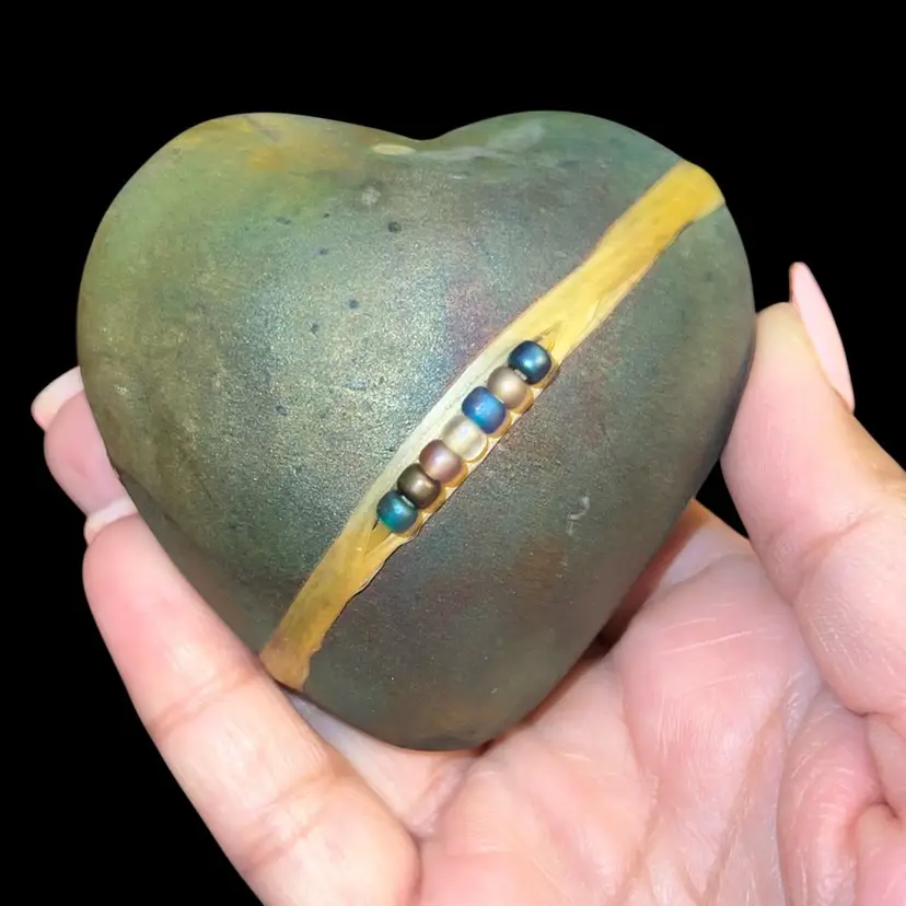 no chips or cracks. Height is 1 1/2 inches. 2 1/2 x 2 1/2“ it rattles with a pleasant sound